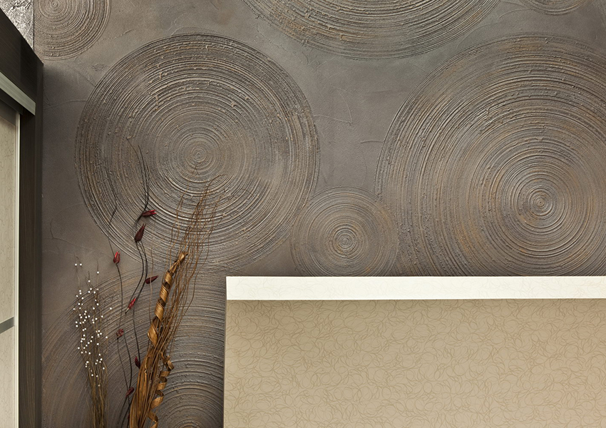Pri odabiru materijala za ukras, morate poći od željenog rezultata, uzimajući u obzir teksturu i boju zidova i namještaja. Dekorativna žbuka pomoći će izravnati sve nepravilnosti na zidovima. Takav dizajn izgledat će lijepo i jedinstveno.