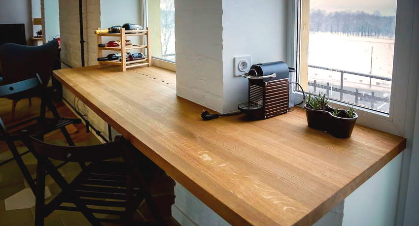 Abban az esetben azonban, ha az ablak széle a szokásos 115 cm alá süllyed, ez sem jelent problémát. A bárpult a "kívánt" magasságban rögzíthető, és maga az ablakpárkány szétszerelhető vagy további polccá alakítható. A kis konyhákban, ahol nincs elegendő hely egy teljes asztal elfogyasztására, ez sok problémát megold. De egy ilyen rekreációs terület nem zavarja a tágas szobákat, különösen, ha az ablakból csodálhatja a gyönyörű kilátást.