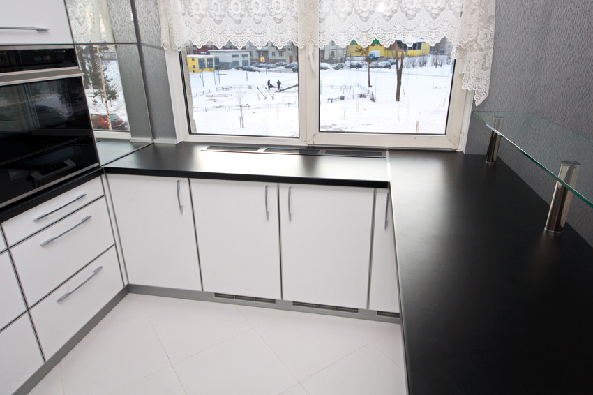 A konyhapult munkalapjának ablakpárkányával történő létrehozása során figyelembe kell venni az alatta lévő radiátor jelenlétét. Annak elkerülése érdekében, hogy a felület zavarja a fűtött levegő áramlását, lyukakat kell vágni benne, amelyeket esztétikai szempontból ajánlott rácsokkal lezárni. Ami magát a munkalapot illeti, kényelmesebb lesz a maradék munkaterülettel kombinálni, így a "G" betű alakját kapja.