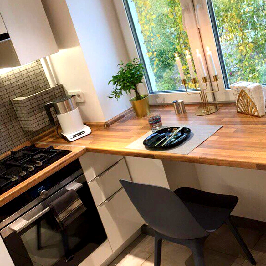 Így hihetetlenül sikeres az a gondolat, hogy egy ablakpárkányt munkalapokká alakítsanak számos kivitelben. Ennek a megoldásnak köszönhetően nemcsak értékes helyet szabadíthat fel a kikapcsolódáshoz, étkezéshez vagy munkához, hanem stílust és modernséget is adhat a konyha kialakításának.