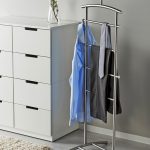 A kerekes fogas is megfelelő lesz az otthoni belső térben. A ruhatároló állvány további funkcionalitása megkönnyíti annak mozgatását abban az esetben, ha várhatóan nagyszámú vendég találkozik egy kis folyosóval rendelkező lakásban.