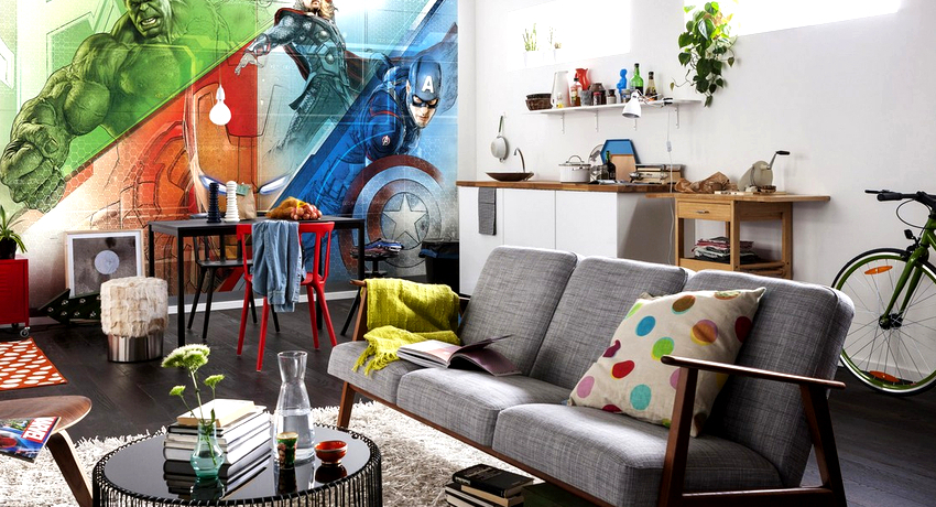 A csarnok fotótapétája: a képek használatával történő tervezés készítésének jellemzői. A tér övezete és kiterjesztése. Különböző típusú tapéták használata a nappali belsejében.