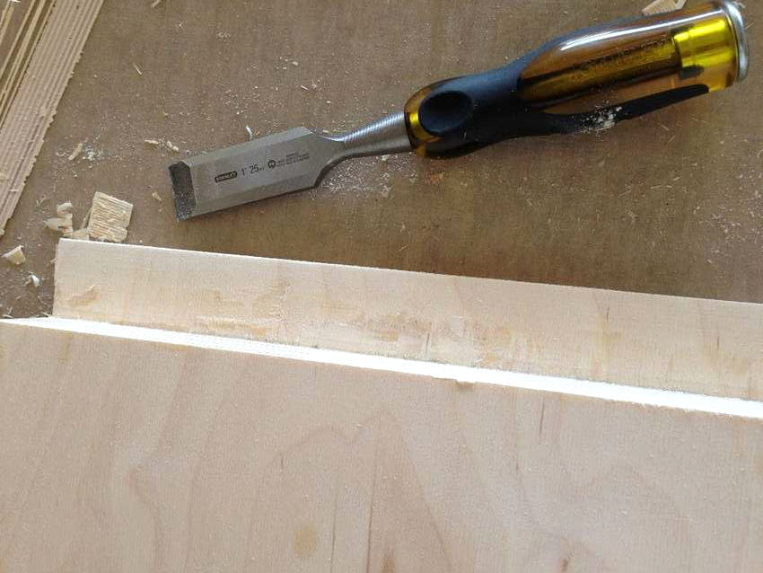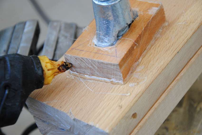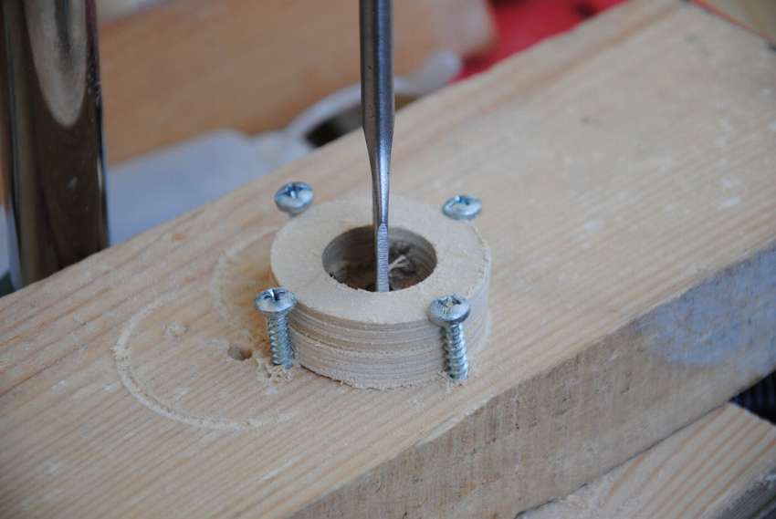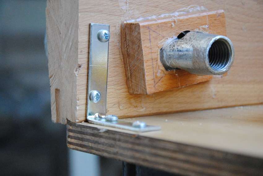 - Sur une partie fixe, des écrous sont insérés dans les trous préparés, qui sont préalablement graissés avec de la colle des deux côtés.