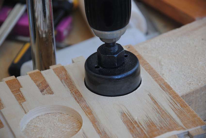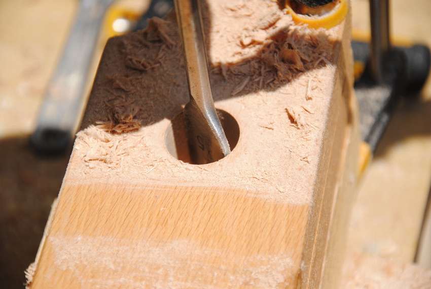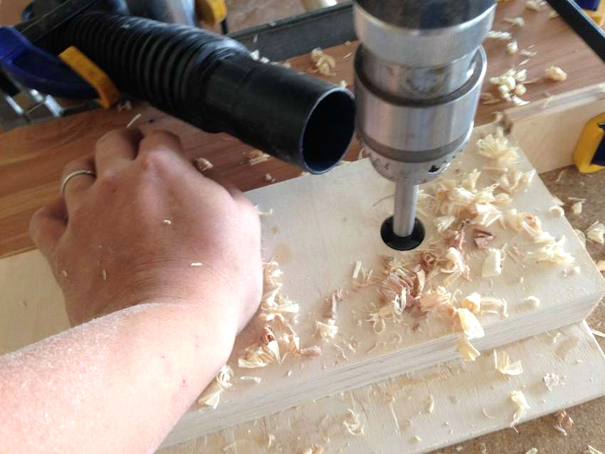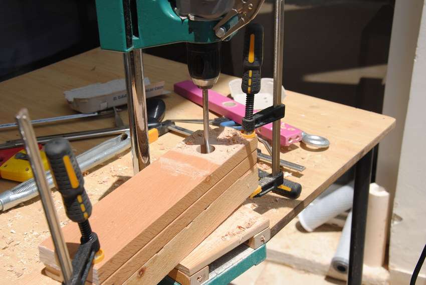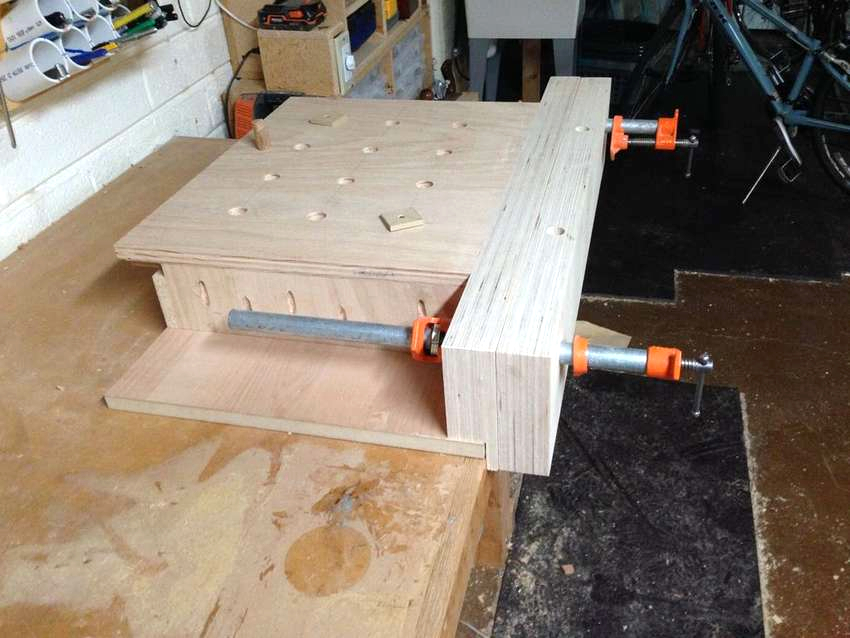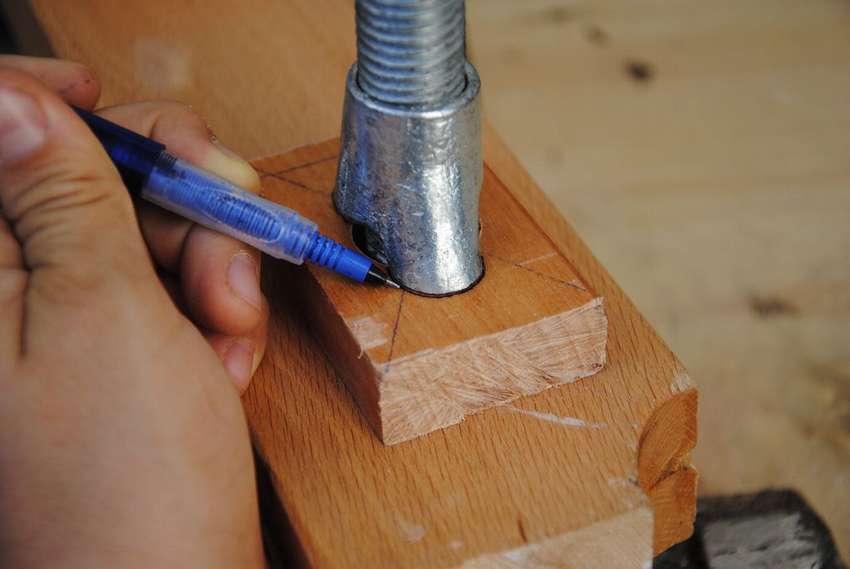 Un point important dans la fabrication d'étaux en bois est que les trous de la partie fixe doivent être plus petits que les écrous, ce qui empêchera l'écrou de tourner dans le trou.