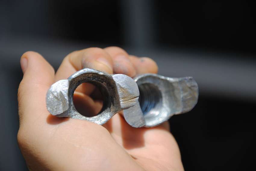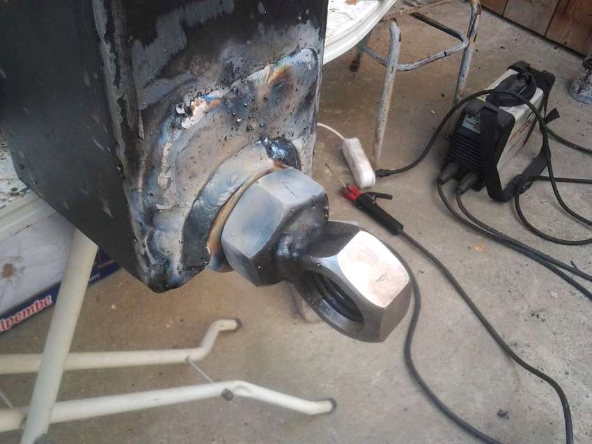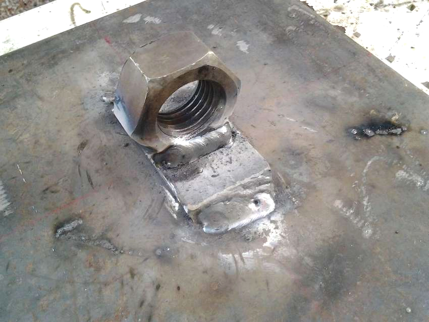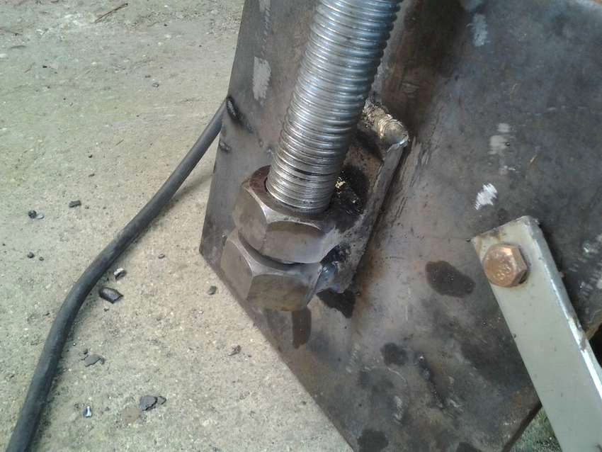 Un couple d'écrous dans lesquels la vis est vissée n'est pas facile à faire vous-même; ici, il est préférable de faire appel aux services d'un tourneur professionnel. L'écrou est soudé au canal autant que possible coaxialement. Les extrémités du canal doivent être couvertes à l'aide de morceaux de feuilles de métal; un trou pour la vis doit être fait dans la bande.