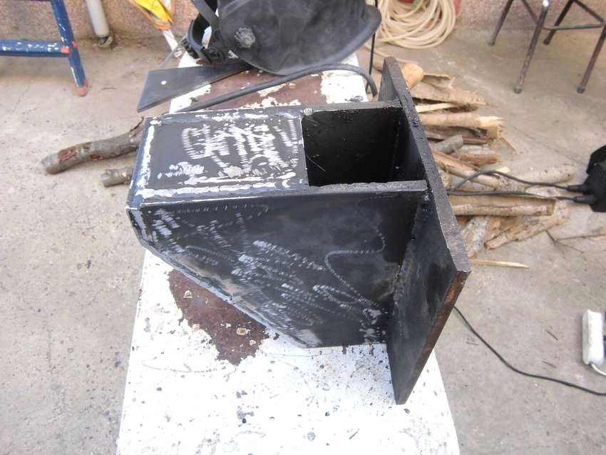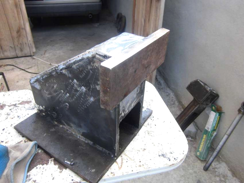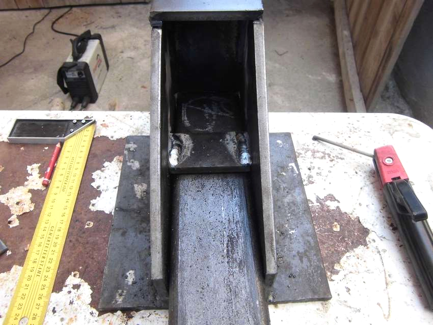 À l'étape suivante, à l'aide d'un moulin, deux coins et une assiette sont découpés.Les coins finis sont attachés au canal des deux côtés et recouverts d'un morceau de métal. Ainsi, une structure en forme de U est obtenue, qui est à la base d'un étau fabriqué à la main à partir d'un canal.