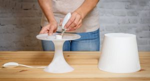עצה שימושית! אם השולחן תפוס, עדיף להתקין את המנורה על הקיר, שם יובטח שהיא תהיה מוגנת מפני נפילה ולא תתפוס מקום יקר. החיסרון העיקרי הוא הפרת שלמות הקיר והעברת המוצר הבעייתית.