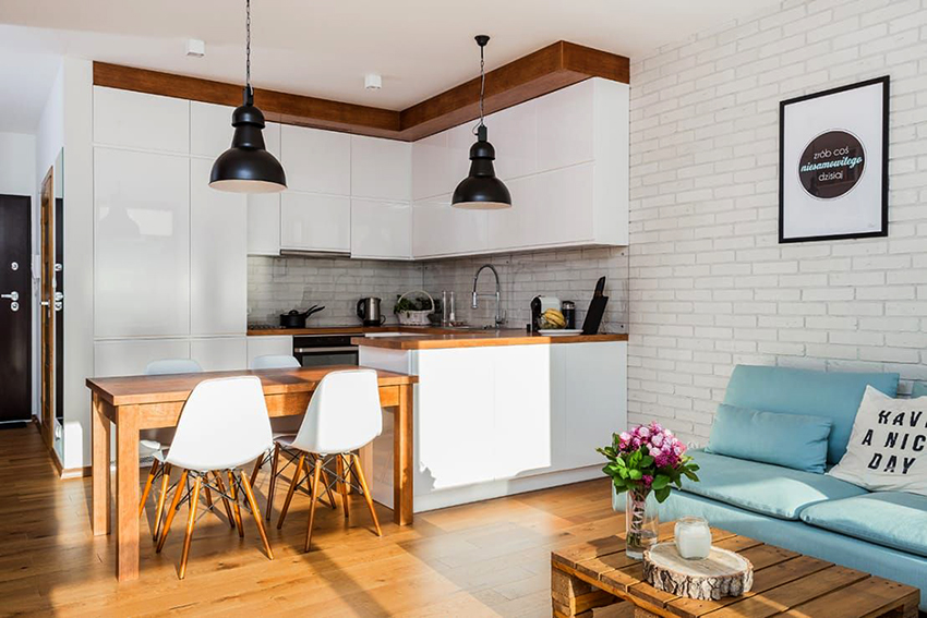 אסור להעמיס על המטבח בסלון עם הרבה רהיטים ואלמנטים דקורטיביים, במיוחד אם החדר מוגבל בגודלו. הדגש צריך להיות על נושא אחד, בין אם זה חלון ויטראז 'או ציור יוצא דופן. בחלל קטן יש לבחור רהיטים בצבעים בהירים ולא גדולים מדי.