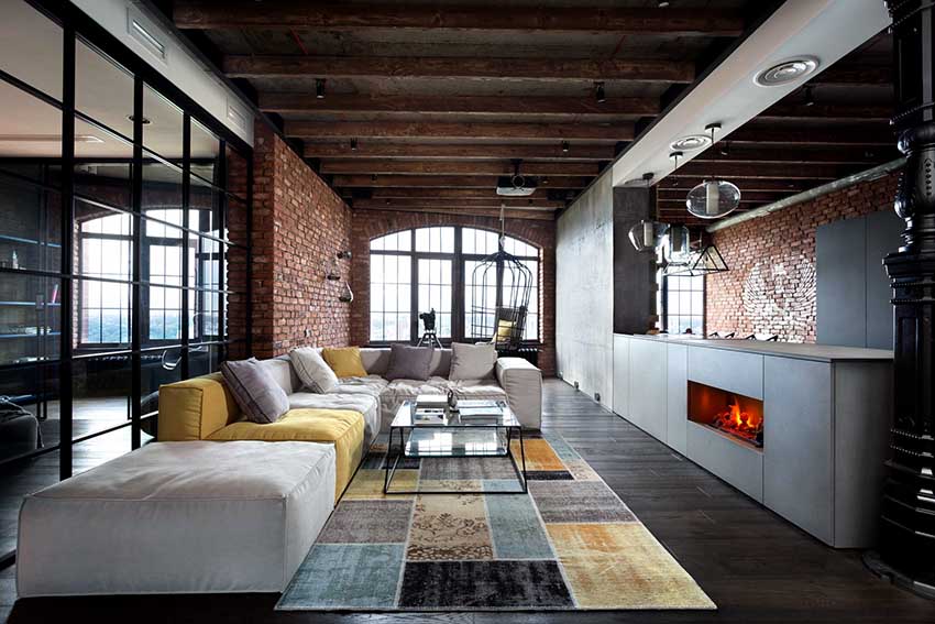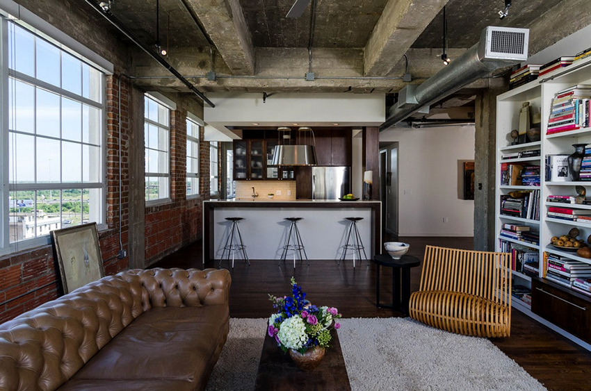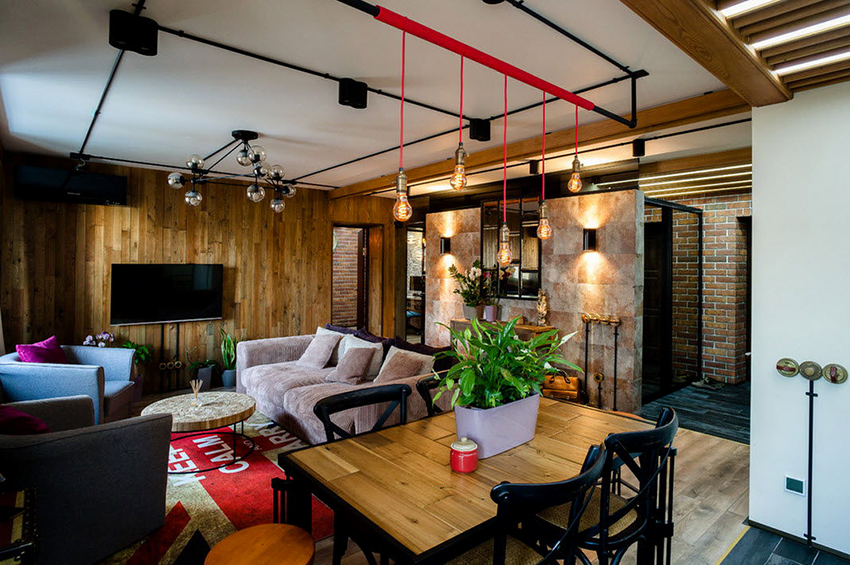 תכונות של גימור סלון בסגנון לופט בדירה: תמונות של דוגמאות מקוריות