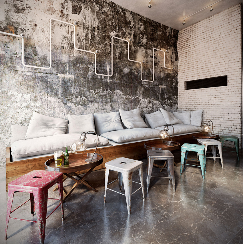 - סיימו עם אפקט מזדמן. לבנים עלובות, משטחים מיושנים במיוחד של לרבד או פרקט, קירות עם חיקוי חורים וגרפיטי צבוע נחשבים כולם לסימני ההיכר של הסגנון.