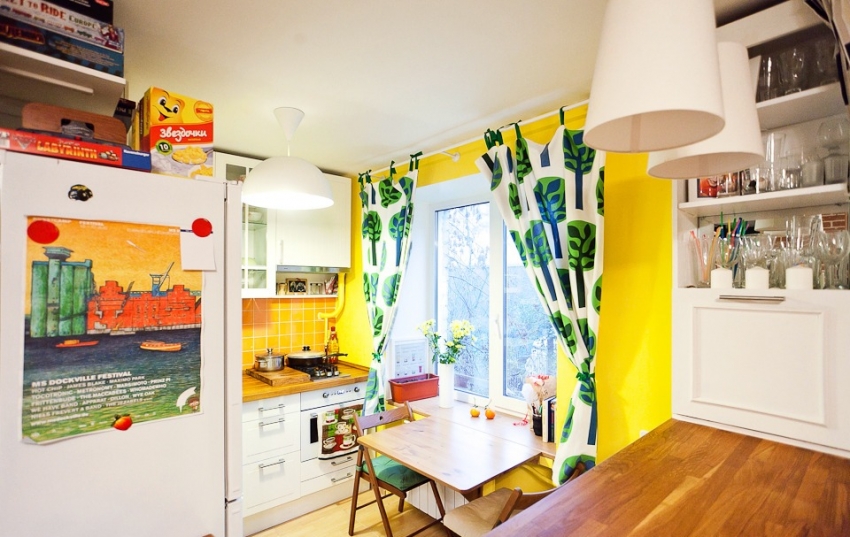 עצה שימושית! האם למטבח יש יציאה למרפסת, תוכלו להרוס את הקיר וכך להרחיב את החלל. יתר על כן, בהרחבה כזו תוכלו למקם מקרר או פינת אוכל.