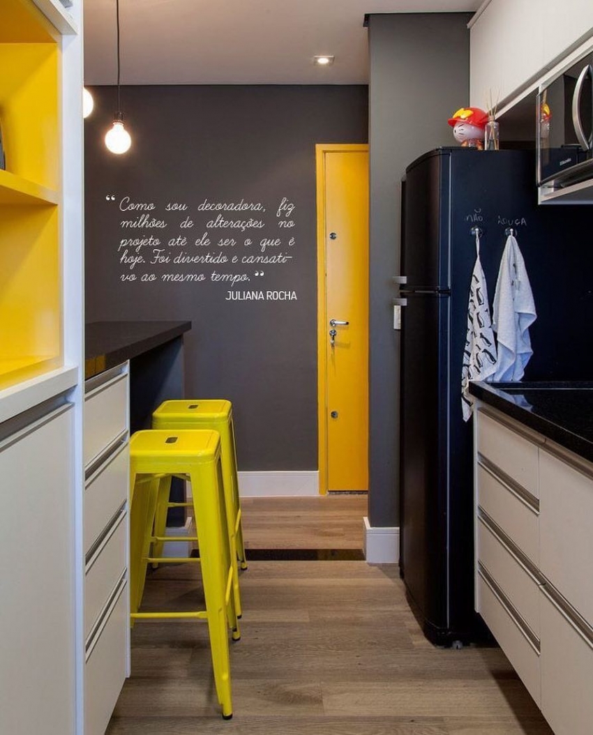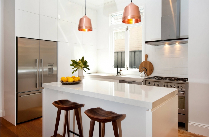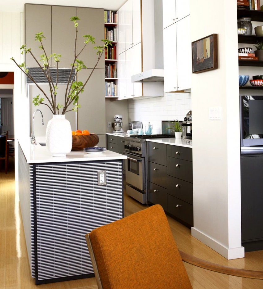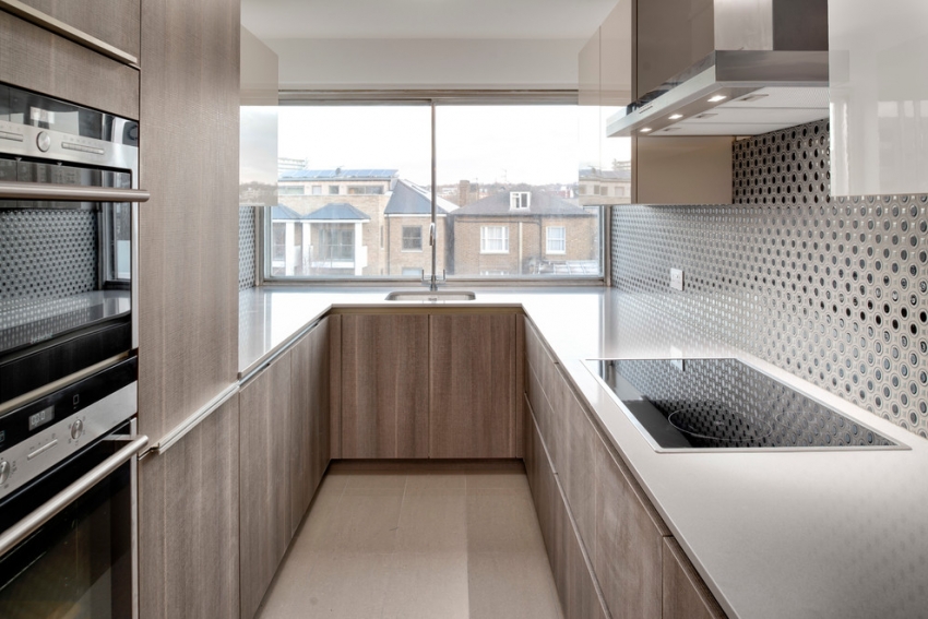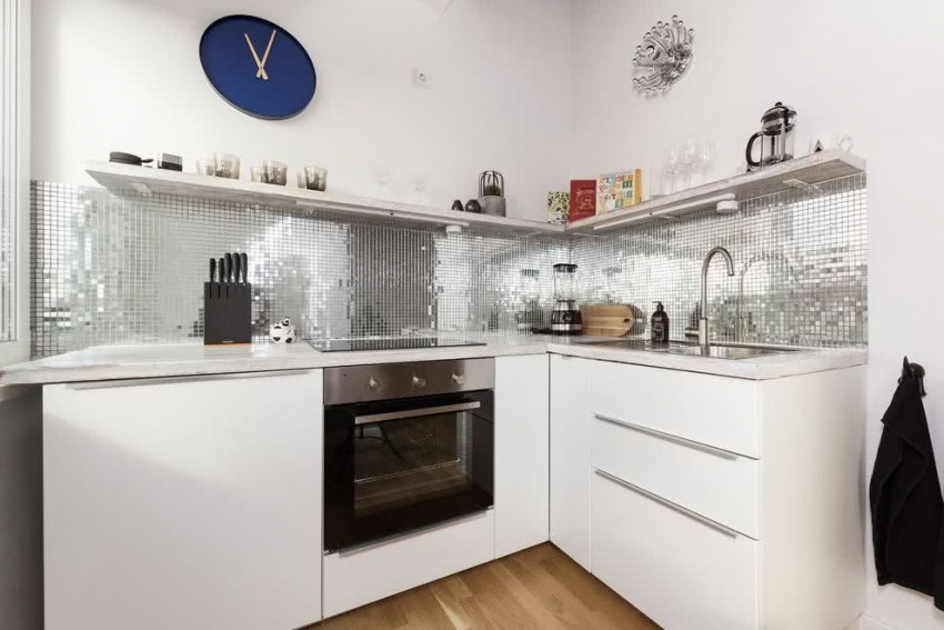 למטבח קטן ב סגנון מודרני פיתרון טוב יהיה לבחור רהיטים מתכתיים מבריקים