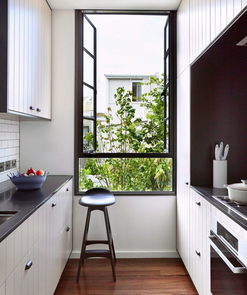 על ידי הצבת משטח העבודה במקום אֶדֶן הַחַלוֹן, תוכלו להגדיל את השטח הניתן לשימוש במטבח קטן