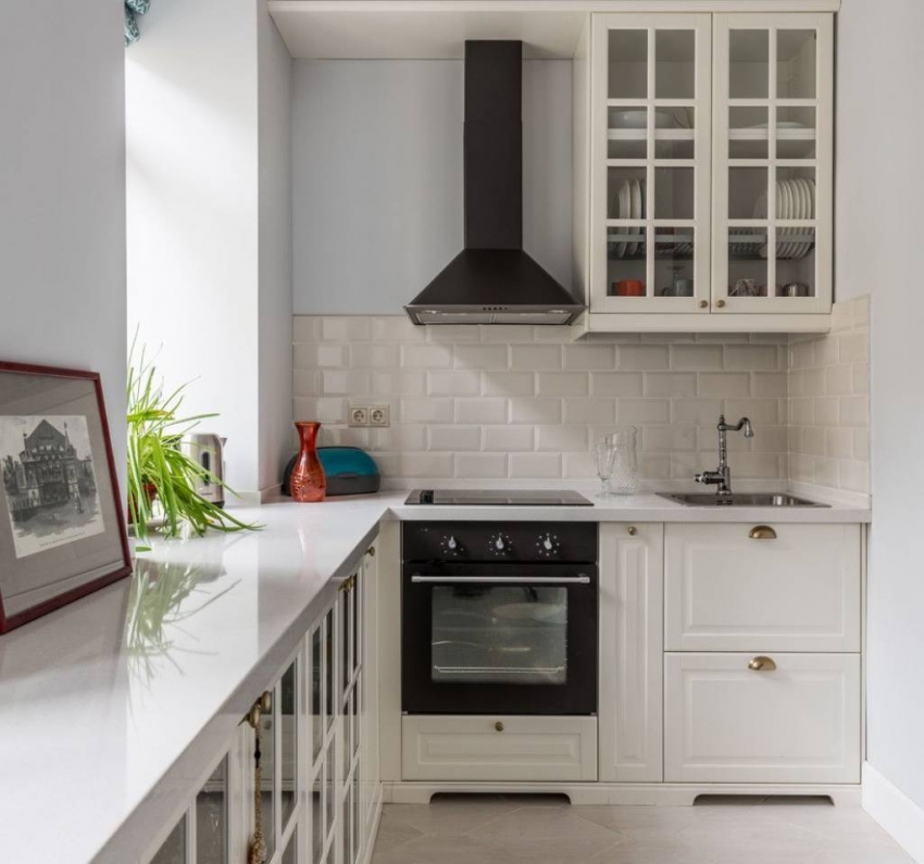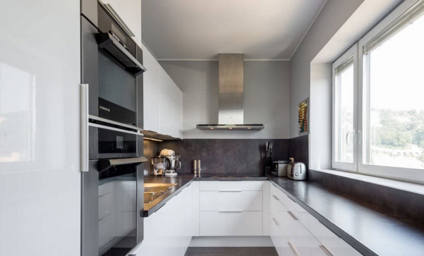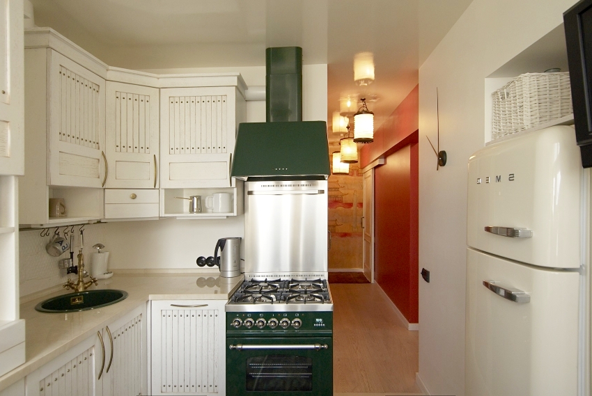 חָשׁוּב! גודלו הקטן של המטבח כלל אינו סיבה לסרב לתקשורת מלאה. לדוגמא, כדאי לדאוג לנוכחות ארובה מעל הכיריים, אחרת קיים סיכון שהוא יהיה מאוד מעושן וחם בחדר כה קטן במהלך הבישול.