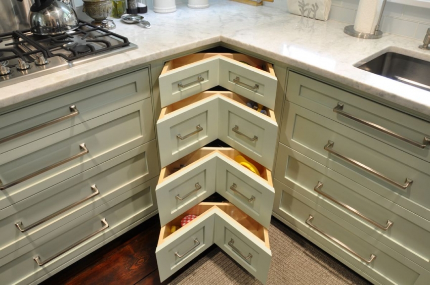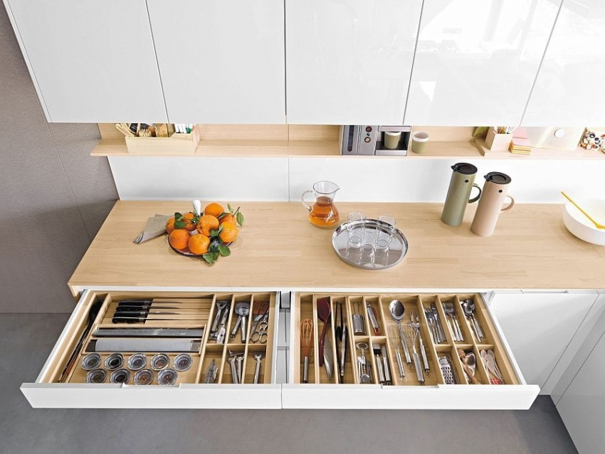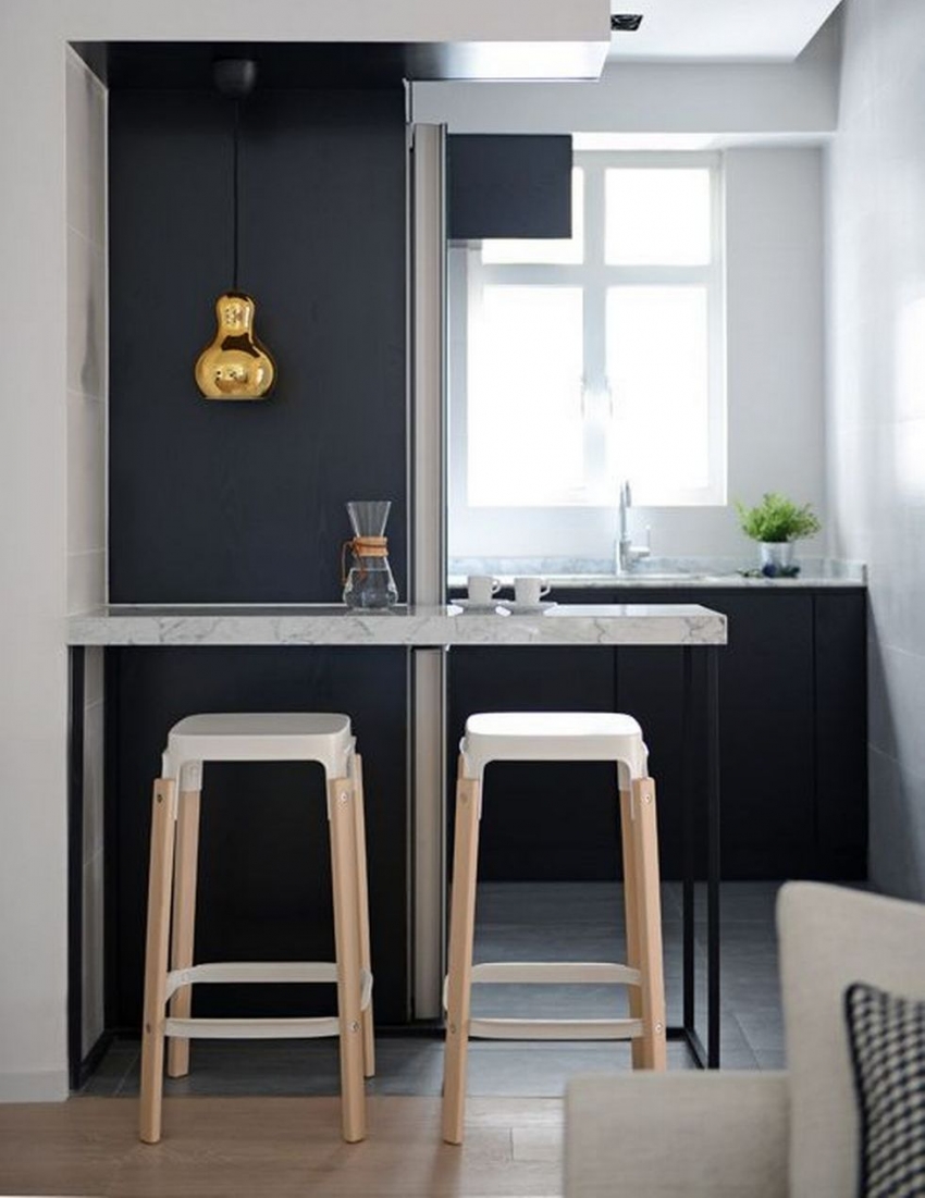 - בסידור מטבח קטן, מערכות נשלפות מודרניות יבואו להצלה, כמו גם שולחנות מתקפלים.