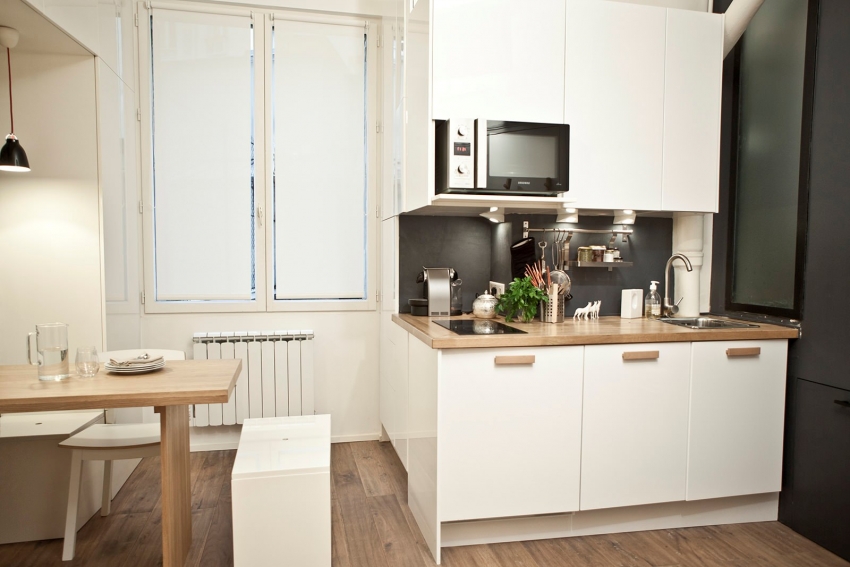 הפיתרון הטוב ביותר לבעיית המחסור במקום פנוי הוא שימוש בריהוט למכשירים מובנים. כגון ערכות מטבח אתה יכול למצוא אותו במבצע או להזמין ייצור אישי, לאחר ביצוע מדידות מדויקות. חשוב גם לחשוב כיצד ייפתחו המגירות והדלתות.