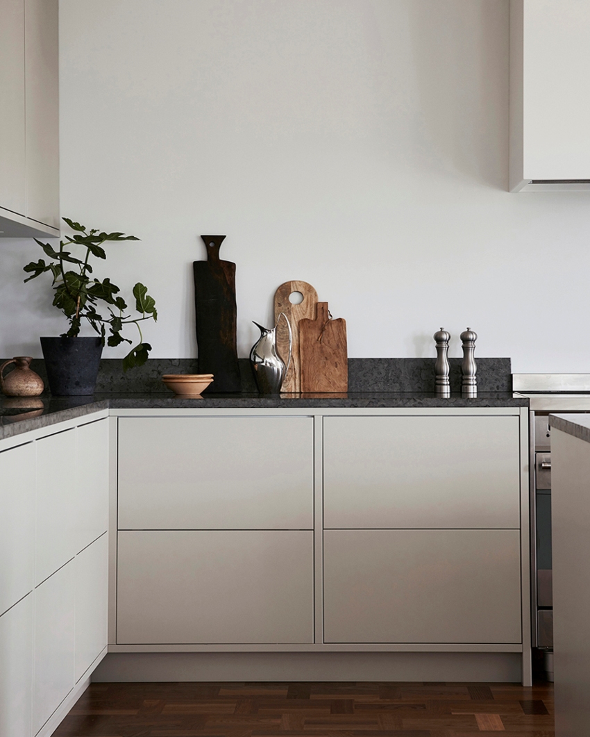 מטבח הייטק מניח מספר מינימלי של הדגשים ואביזרים צבעוניים