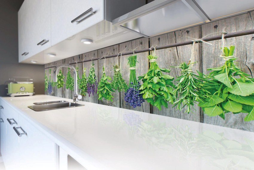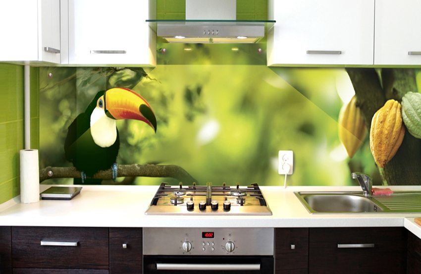 סינרים למטבח, מעור עור: תמונות של אפשרויות עיצוב לוחות זכוכית