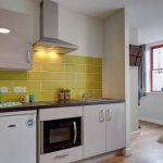 - משטח זכוכית מקשה אחת במטבח מגדיל באופן חזותי את החלל, מה שהופך את החדר למרווח ורענן יותר;