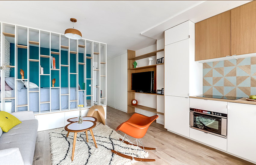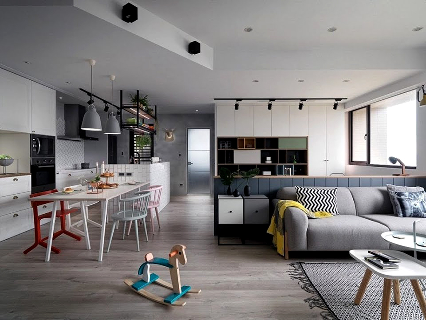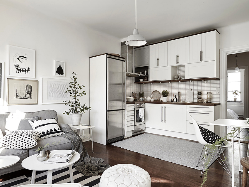 דוגמאות לעיצוב מטבח-סלון בסגנון סקנדינבי