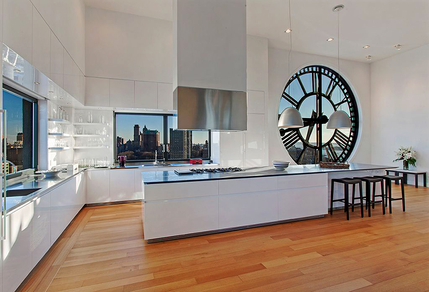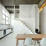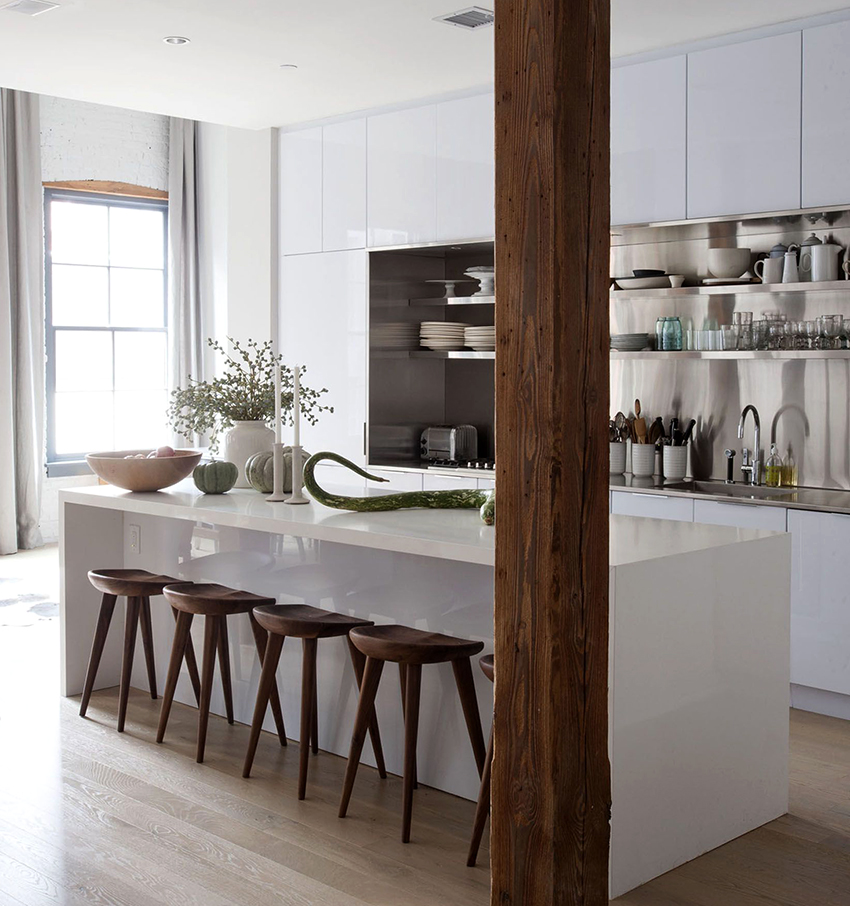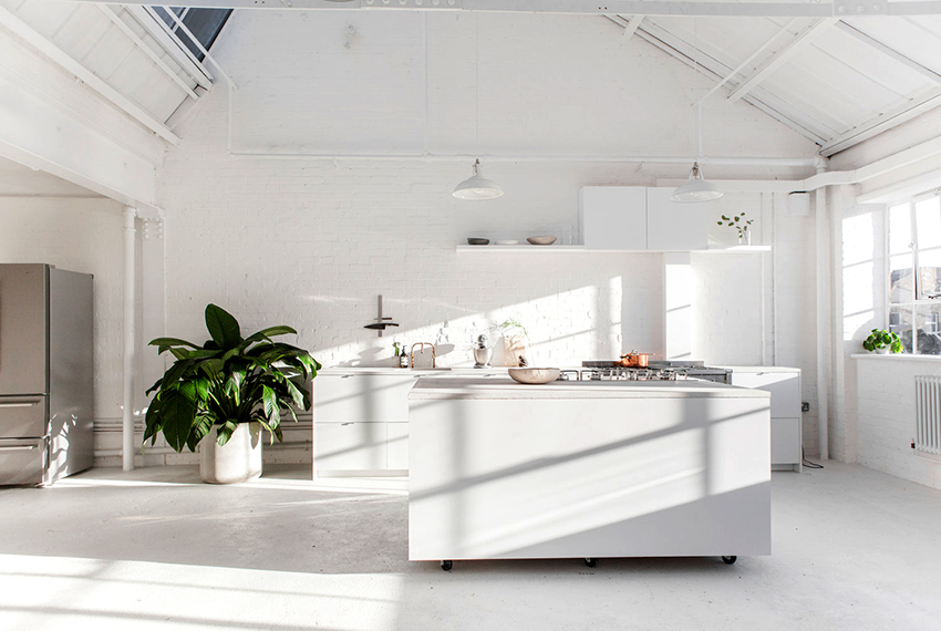 מטבחים לבנים בסגנון לופט נראה קליל, מרווח והרמוני