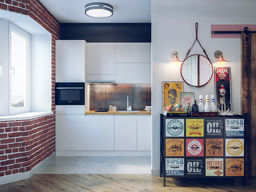 כיצד לקשט פנים מטבח לבן בסגנון לופט: צילום