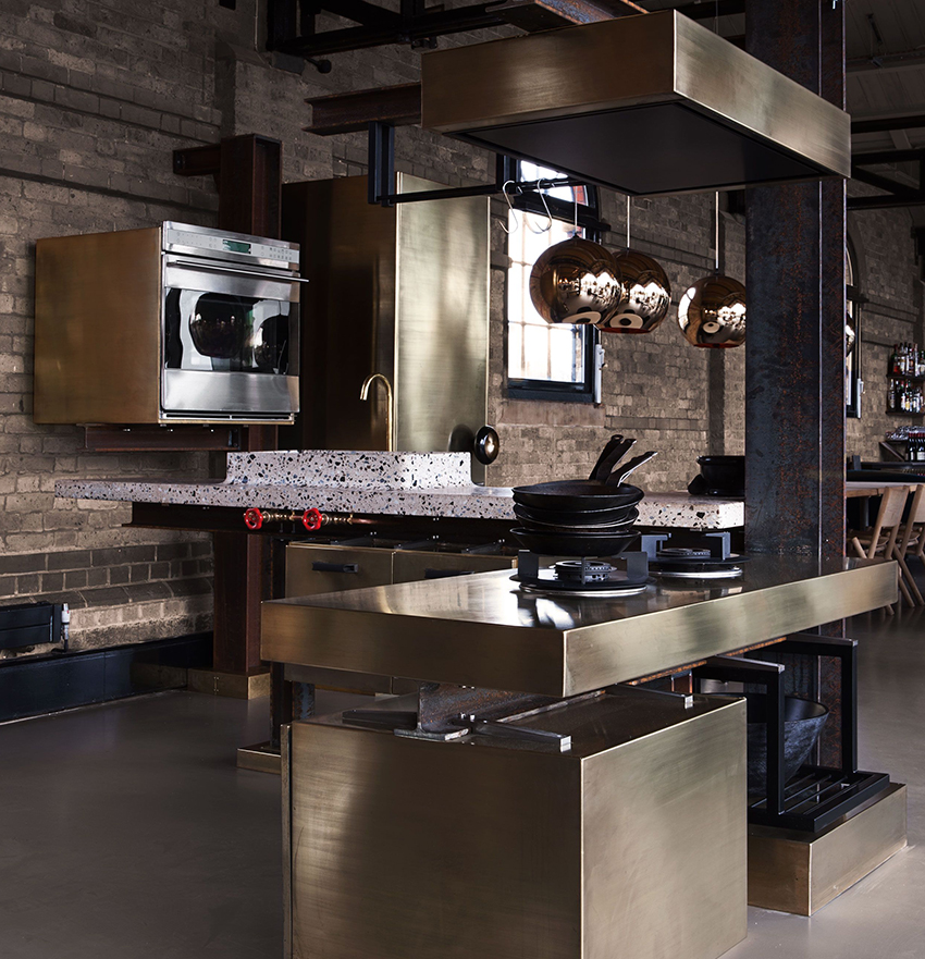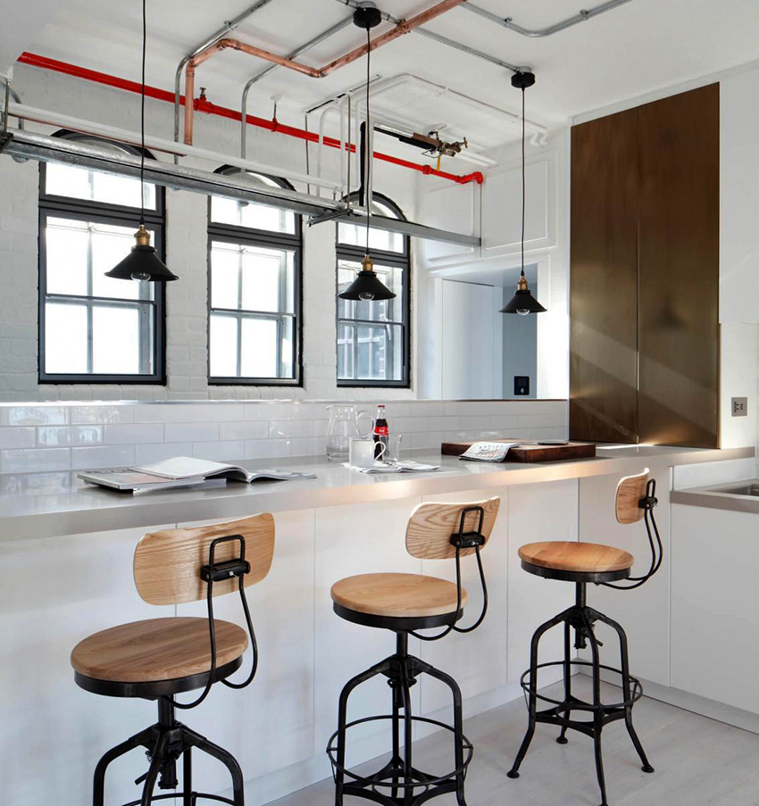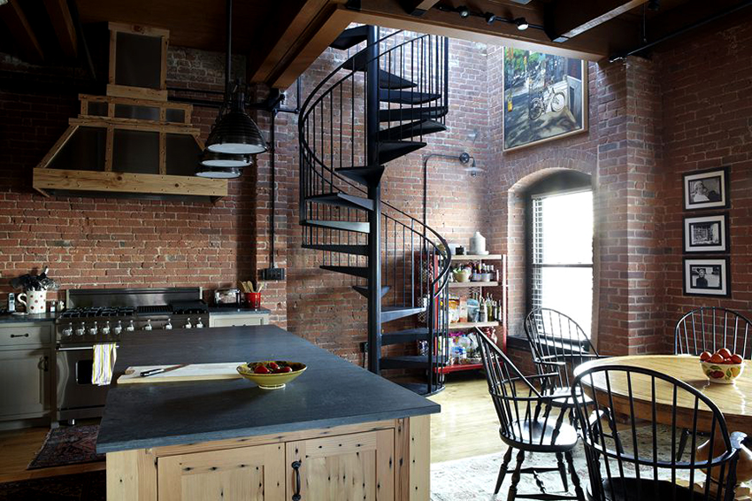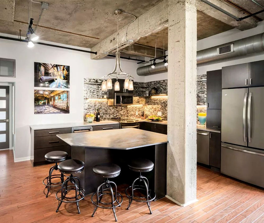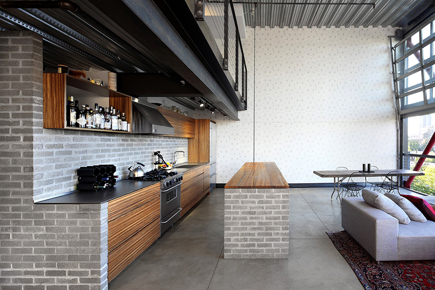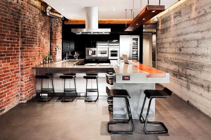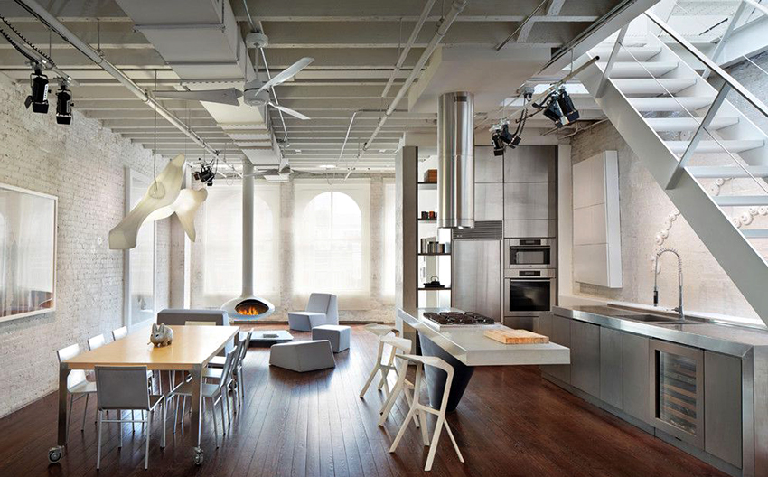 מטבח בסגנון לופט הוא אידיאלי לחלל גדול עם תקרות גבוהות וקירות פתוחים. אלמנטים דקורטיביים מתאימים: