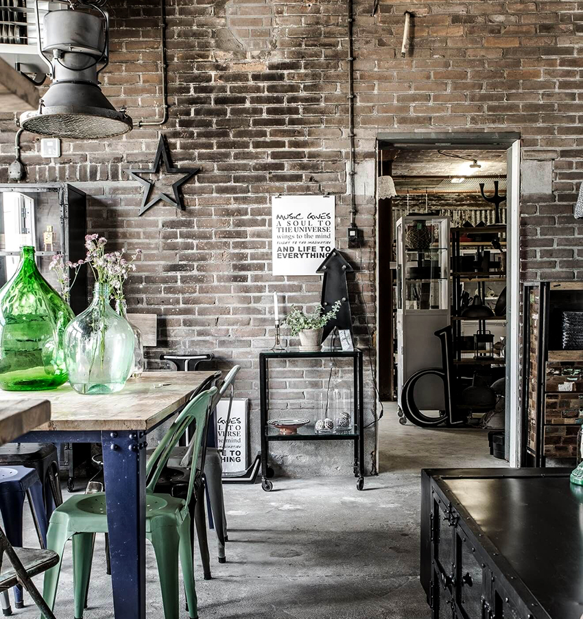 אם הקירות עשויים לבנים, אין צורך להסתיר אותם מתחת לטיח, אך עדיף להשאיר אותו בצורתו המקורית, פשוט על ידי יצירת תפרים מסודרים. על הרהיטים להיות פונקציונליים ככל האפשר ולמראה מחוספס, בעוד שאפשר לשלב אותם עם טכנולוגיה מודרנית. מאפייני סגנון אחרים כוללים: