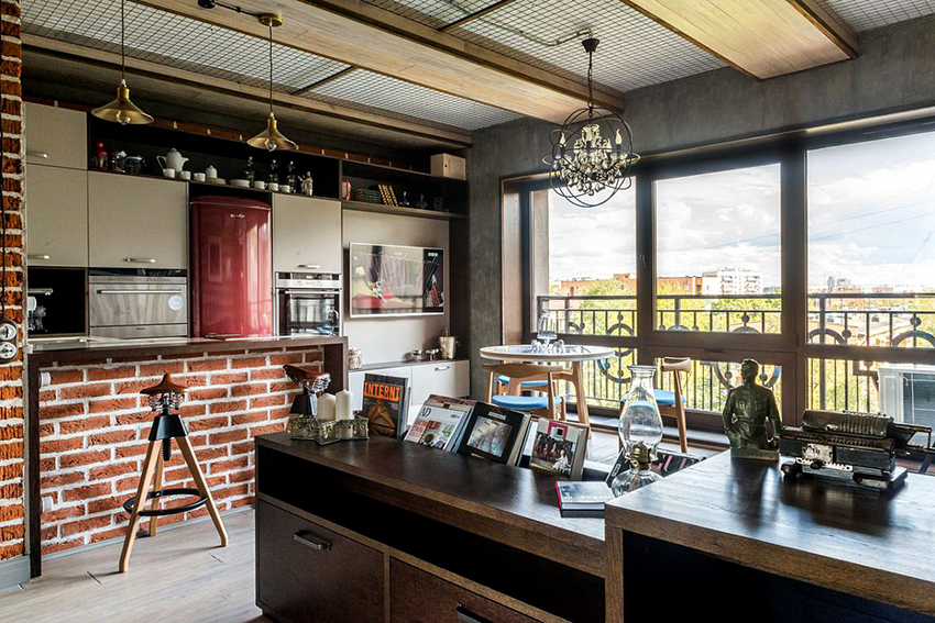 חָשׁוּב! הרבה יותר קל לשחזר את סגנון הלופט במטבח עם תקרות גבוהות.