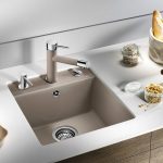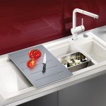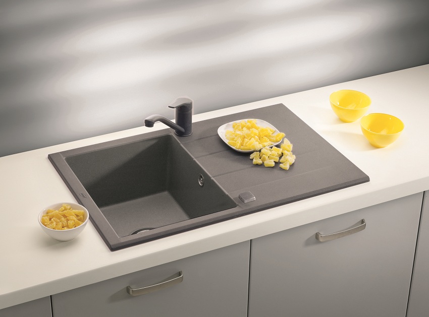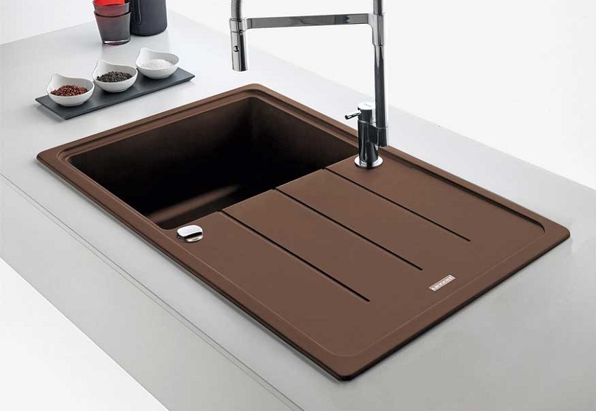 סוג הרכבה... אם יש לך ריהוט מודולרי במטבח שלך, בחר בכיור תקורה עשוי אבן מלאכותית. להתקנה על משטח עבודה מוצק, מתאים מוצר צמוד. כאשר העלות הגבוהה אינה קריטית מבחינתך, עדיף לבחור את הכיור כך שצבעו יהיה בהרמוניה עם גווני הרהיטים. ואז המעבר של משטח העבודה לכיור יהיה אידיאלי.