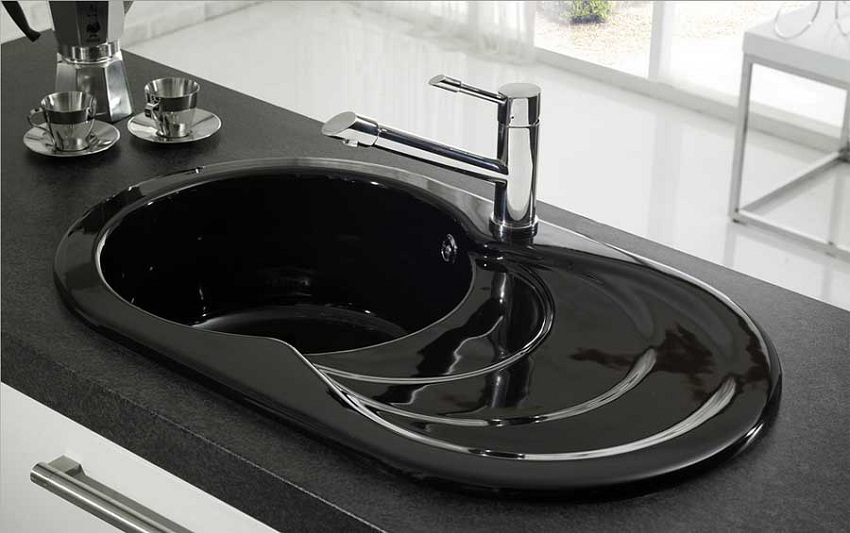 פּרַקטִיוּת... על מוצר מבריק שחור, קווי המתאר של משקעי המים, כמו גם כתמים אחרים, נראים היטב. לכן, כיור כזה יהיה צורך לנקות כמעט לאחר כל שימוש. לעיל נאמר כי האפשרות הטובה ביותר היא חום בהיר, בז 'ולבן.