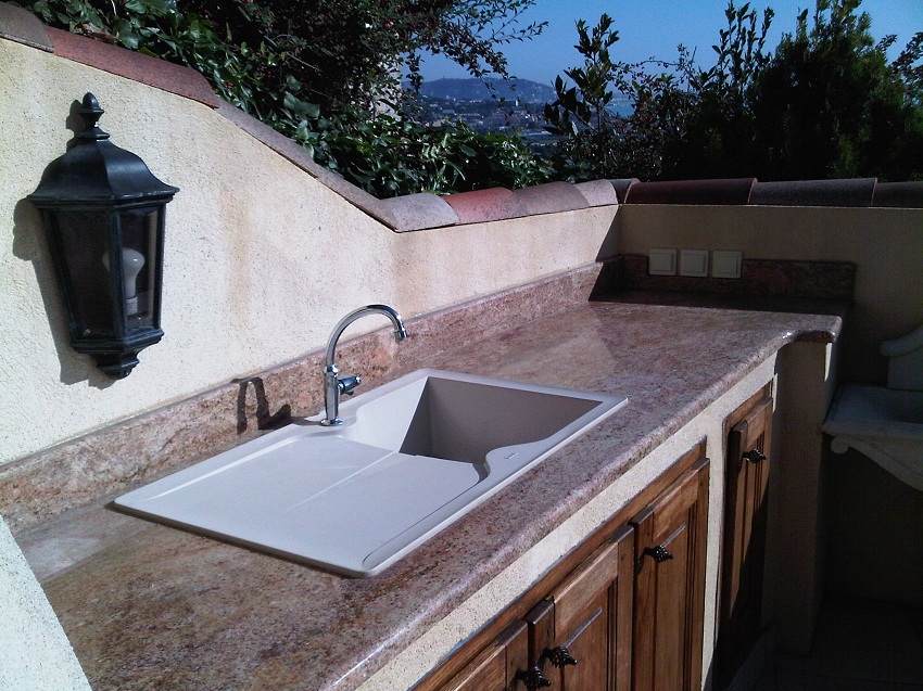 כציפוי לכיורי אבן מודרניים משתמשים בג'לקוט - קומפוזיציה מיוחדת המגבירה את עמידות המשטחים. שכבת מגן זו הופכת את הכיור לחלק וללא נקבוביות. בנוסף, הודות לציפוי זה, המראה המרהיב של כיור האבן במטבח נשמר לאורך שנים רבות של שימוש.