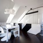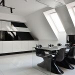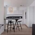 עצה מועילה! כדי לחסוך מקום, מומלץ לספק שולחן שולחן בגובה מתכוונן, שיכול לשמש כשולחן אוכל.