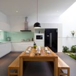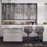 סגנון העיצוב המודרני פופולרי מאוד, כאשר כל הציוד מוסתר ככל האפשר בחלל, דבר שאושר בבירור על ידי צילום עיצוב המטבח עם מכשירים מובנים. המאפיינים העיקריים של מינימליזם הם שלמות והרמוניה. מטבחים מובנים מיוצגים על ידי מבנים מונוליטיים המתארים את החלל הכללי בגיאומטריה ברורה של קווים פשוטים.