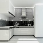מטבח פינתי עם מכשירים מובנים, כפי שמוצג בתמונה, רלוונטי גם לחדרים מרווחים, בהם ניתן להתקין לא רק מבנה בצורת L, אלא גם ליצור שלושה אזורי עבודה באמצעות הסדר בצורת U של המודולים. כאן מומלץ לארגן בנוסף פינת אוכל נוחה או לצייד אי בצורת דלפק בר, הנוח למפגשים ידידותיים ונשנוש מהיר. ניתן להפוך את הבר לשולחן, משטח עבודה או שולחן קטן לילד.