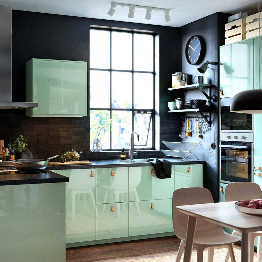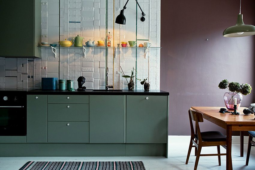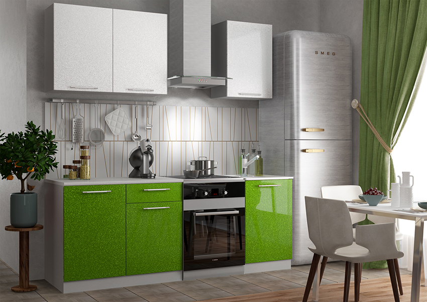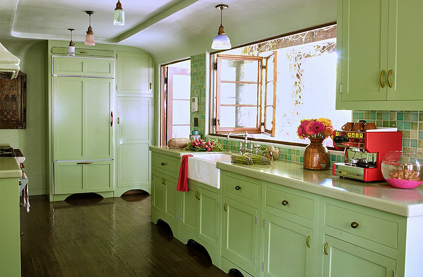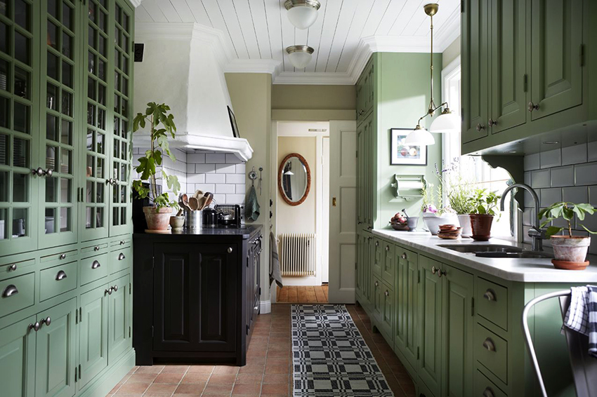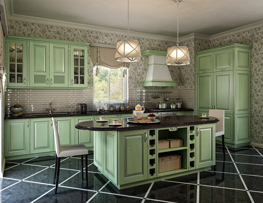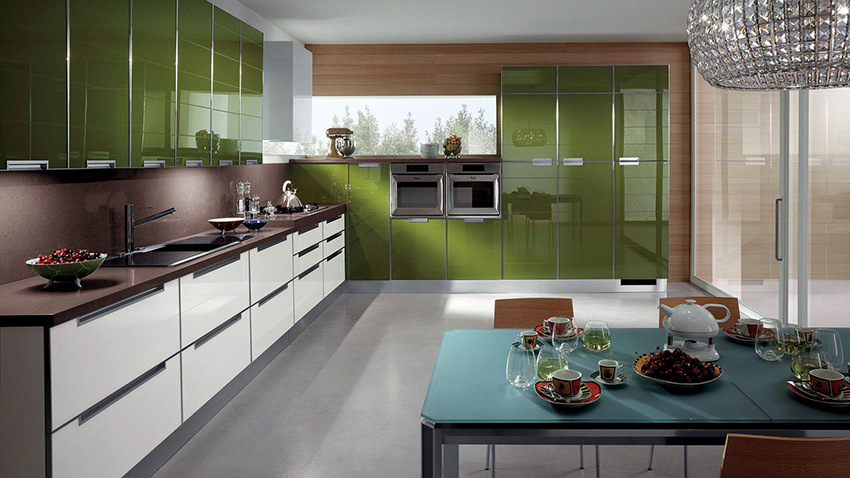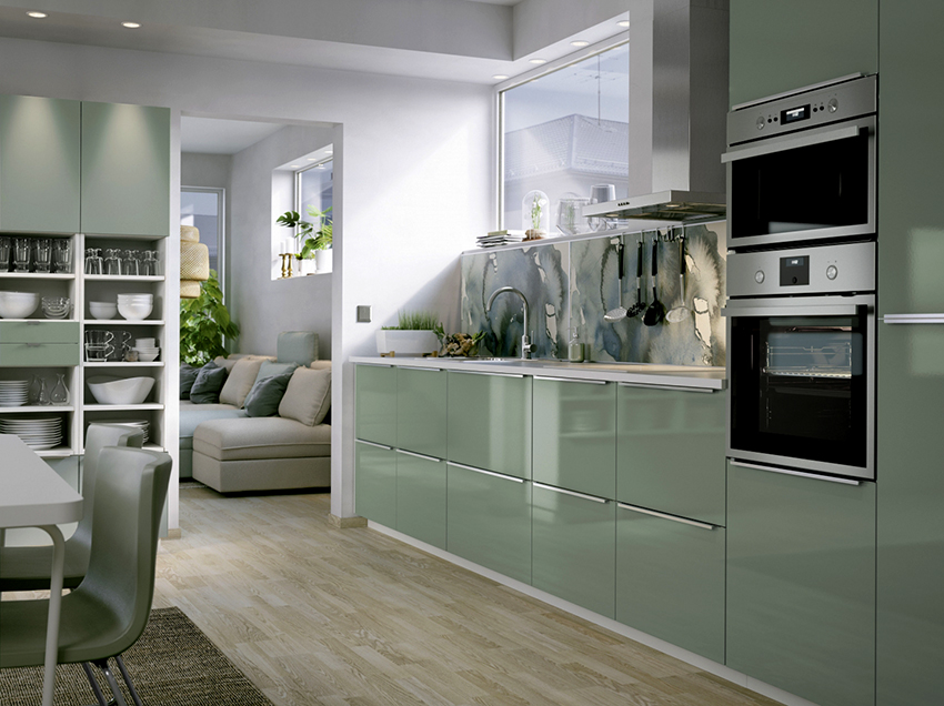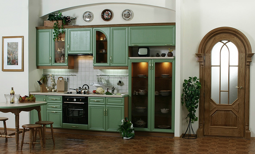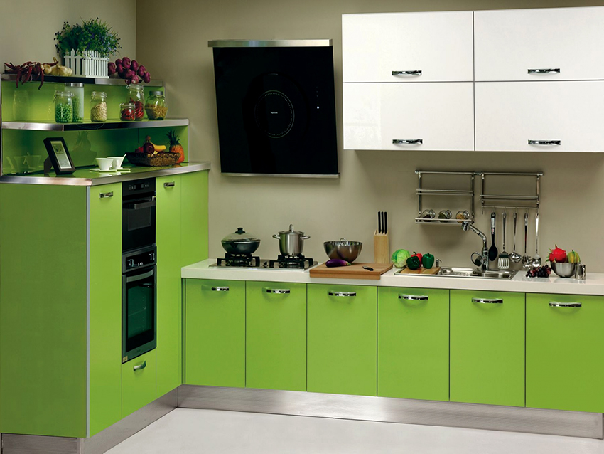 אם תרצו לקנות סט עם חזיתות בצבע ירוק בהיר למטבח, רצוי שהקירות מסביב יהיו עשויים בגווני פסטל רגועים. חשוב להקפיד על כלל מפתח: ככל שהחזיתות בהירות יותר, כך הקירות והמשטחים האחרים צריכים להיות רגועים יותר.