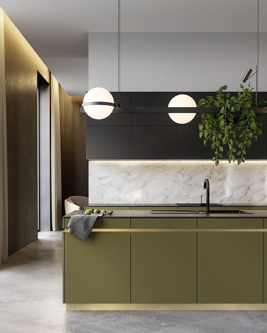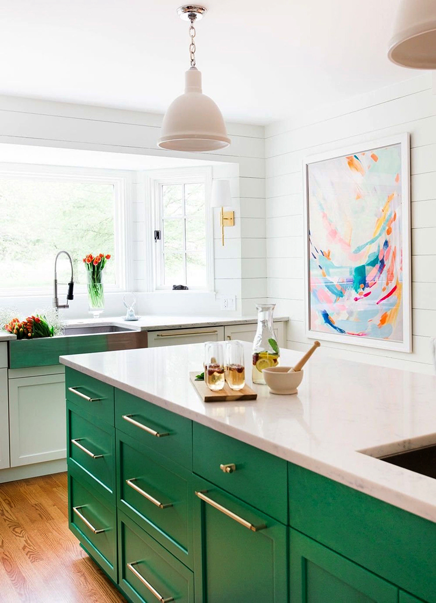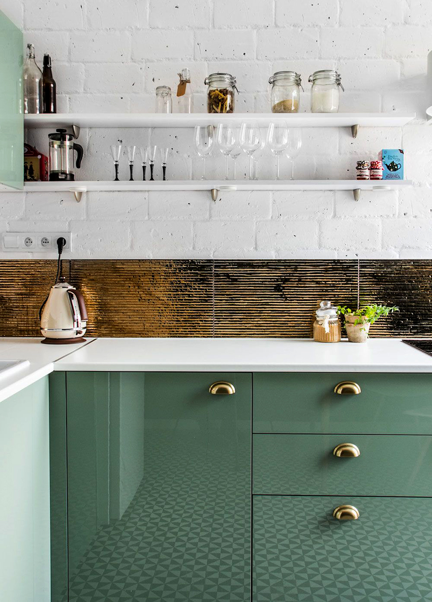אם הגיע הזמן לעדכן את המטבח שלכם, או אם מדובר בשיפוץ גדול, כשאתם רוצים לרענן את הפנים, כדאי לשים לב לשימוש בירוק. לדברי פסיכולוגים, ירוק נחשב מועיל, משפיע לטובה על מצב הנפש, מקל על מתח ועייפות. מטבח ירוק עוזר לכם להכניס את עצמכם למצב רוח חיובי ליום החדש בארוחת הבוקר ולהירגע אחרי העבודה בארוחת הערב, גם אם מזג האוויר מעונן בחוץ.