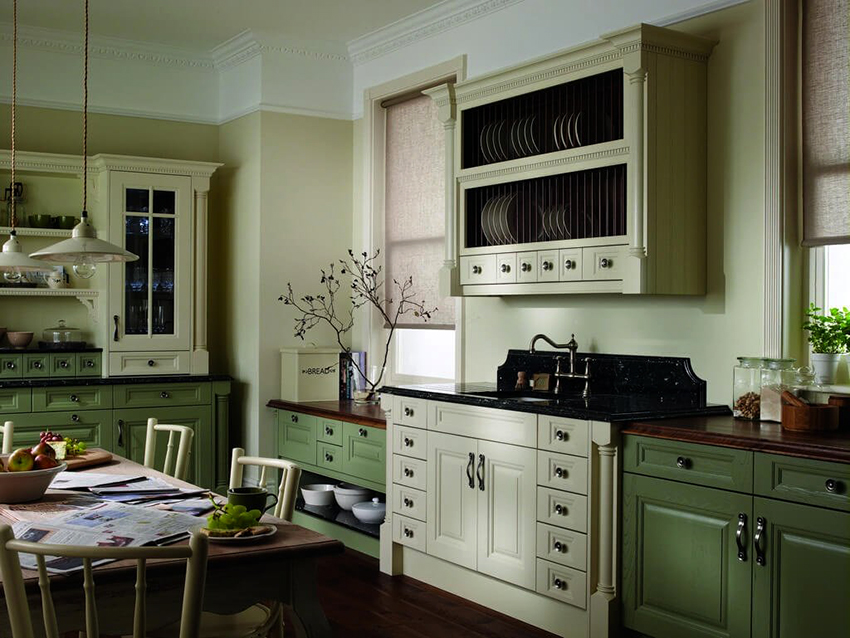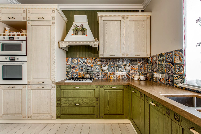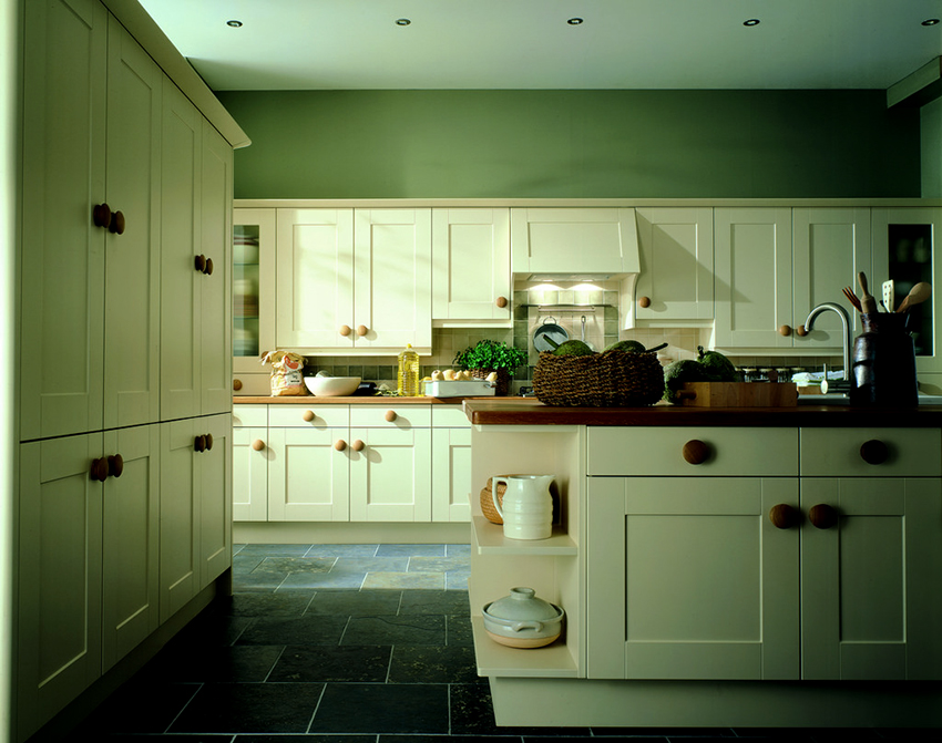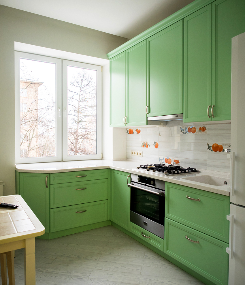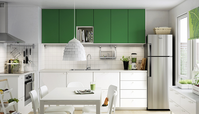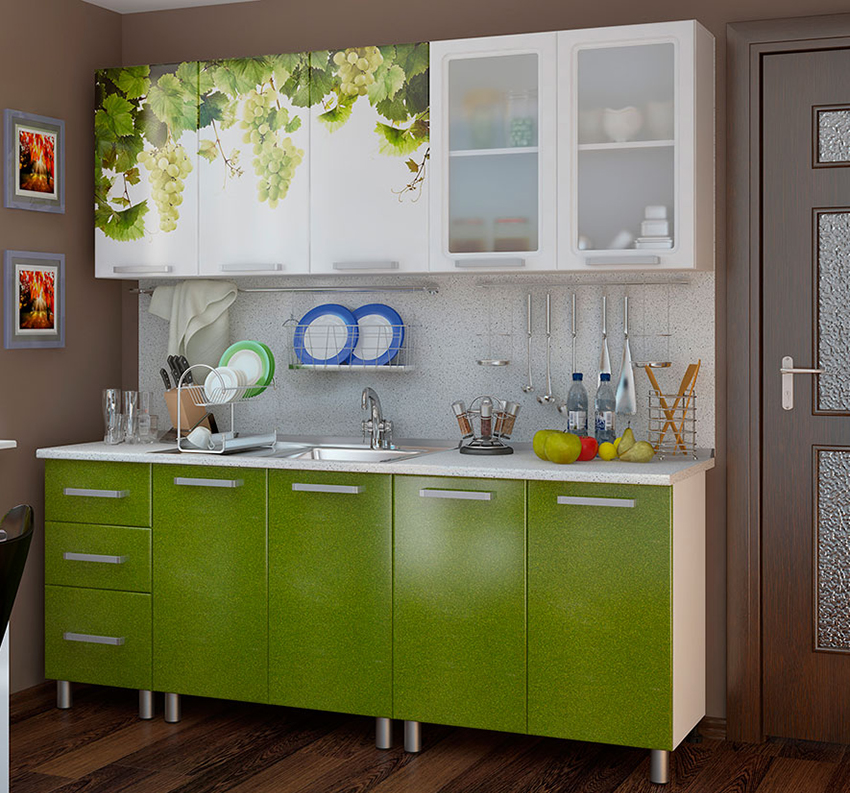 אם בתחילה נעשה שימוש בגוונים ירוקים לקישוט קירות המטבח, מומלץ לבחור את הצבעים הבאים לחזיתות: