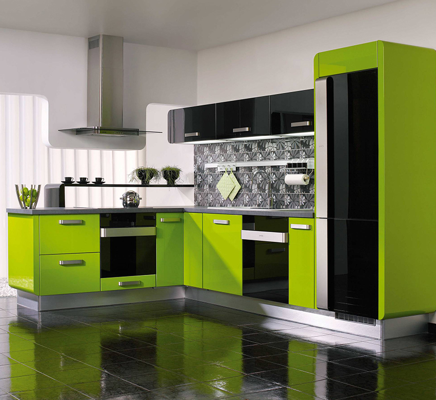 על פי הפנג שואי, ירוק נחשב לצבע המועיל ביותר לקישוט חלל מטבח. פנים המטבח הירוק תמיד נראה רענן ומשמח. טוב לבלות את הבוקר בחדר כזה, להתאים ליום חיובי, ובערב נעים להירגע בפנים הירוקות.בנוסף, חדר מעוטר בגווני ירוק מסייע בהסרת השליליות ומעודד הרפיה מהירה.