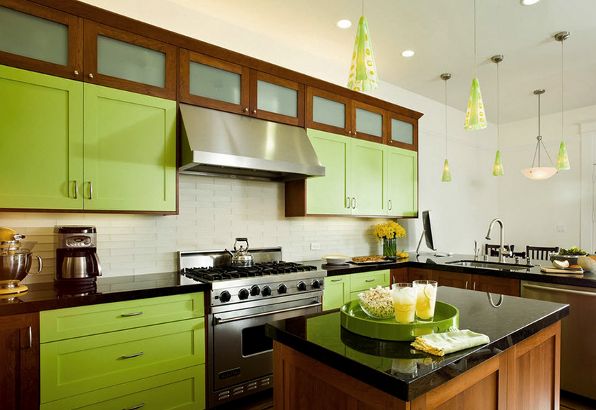 גוונים של ירוק נמצאים לרוב בטבע. צבע ירוק בפנים המטבח ישויך לדשא. עם זאת, כאשר מסדרים מטבח, יש לזכור כי ירוק נבדל על ידי מספר רב של גוונים - מאור עד כהה או אפילו ניאון בהיר. יתר על כן, כל גוון מסוגל לעורר אסוציאציות שונות:
