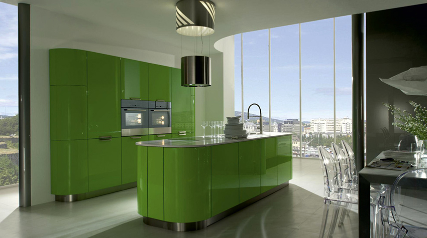 לעתים קרובות ניתן לראות את השימוש בגוון ירוק בהיר במטבחים מודרניים. בתצלום של מטבחים בצבע ירוק בהיר תוכלו לשים לב לשפע הצורות הגיאומטריות הפשוטות והרגילות, כמו גם לשילובי צבעים בהירים. סגנון פרובאנס בפנים המטבח כולל שימוש בגוונים רכים יותר של ירוק בהיר.קלאסיקות לעיתים רחוקות משתמשות בצבעים ירוקים בהירים, מכיוון שלא ניתן לרשום מבטא כה בהיר בפנים כזה.