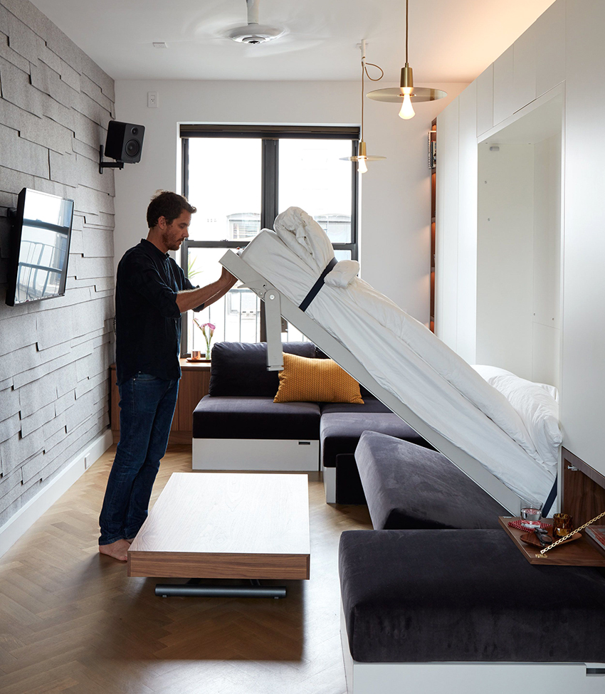 עיצובים להמרה נחשבים לאופציה מאוד פרקטית, במיוחד עבור דירות קטנות. ניתן להמיר דגמים כאלה בקלות לספה, ארון בגדים או שולחן, וזאת בשל הצטיידותם במנגנונים ותושבות אופקיות או אנכיות מיוחדות.