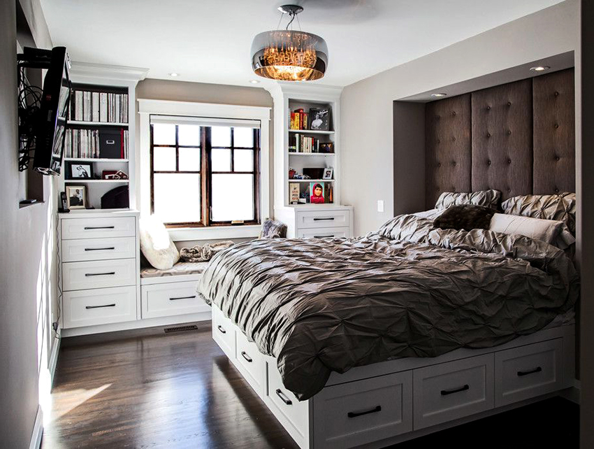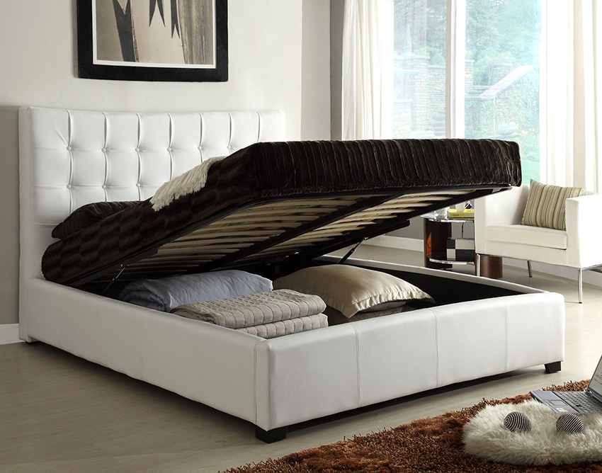 מיטה המצוידת במערכות אחסון היא אפשרות נהדרת לחדר שינה קטן, מכיוון שהיא מבטלת את הצורך ברכישת ארון נוסף, אשר יתפוס מקום יקר מאוד. לעיצובים כאלה יכולים להיות מגוון צורות ותצורות. מיקום הקופסאות הוא סטנדרטי - בתחתית המיטה. ניתן להעלות אותם מצד אחד או מספר צדדים.