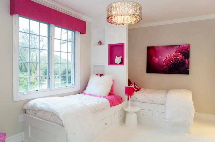 לשתי אחיות תוכלו להתקין ספת מיטה זוגית או מיטת קומותיים לילדות. תמונות מציגות סוגים רבים של דגמים. פופולריים גם הם דגמים נשלפים המצוידים במערכת אחסון נוחה וקומפקטית למצעים ודברים אחרים. עבור חדר מרווח, עיצוב רב תכליתי בצורת מיטת לופט לשני מקומות שינה הוא פיתרון טוב. בקומה התחתונה יש ארון בגדים מרווח, שידת מגירות, מדפים פתוחים ושולחן עבודה.