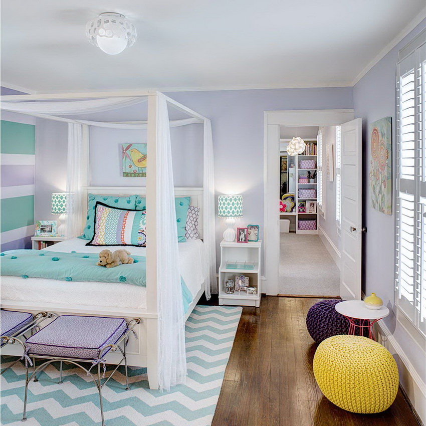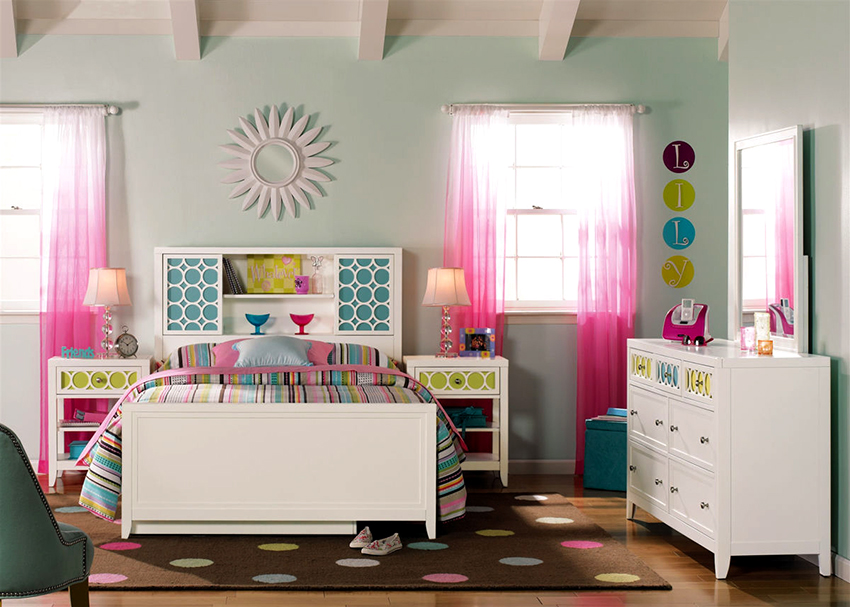 גוונים של צהוב, אפרסק, פיסטוק וסגול פופולריים מאוד בקרב בנות בגיל בית הספר. כאן תוכלו להשתמש גם בגוונים מושתקים וגם בכתמים בהירים ורוויים.