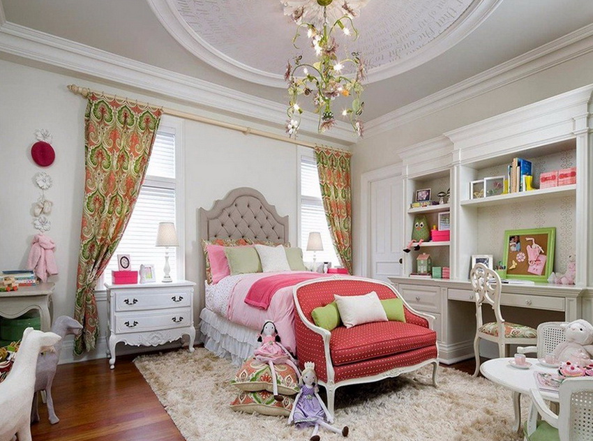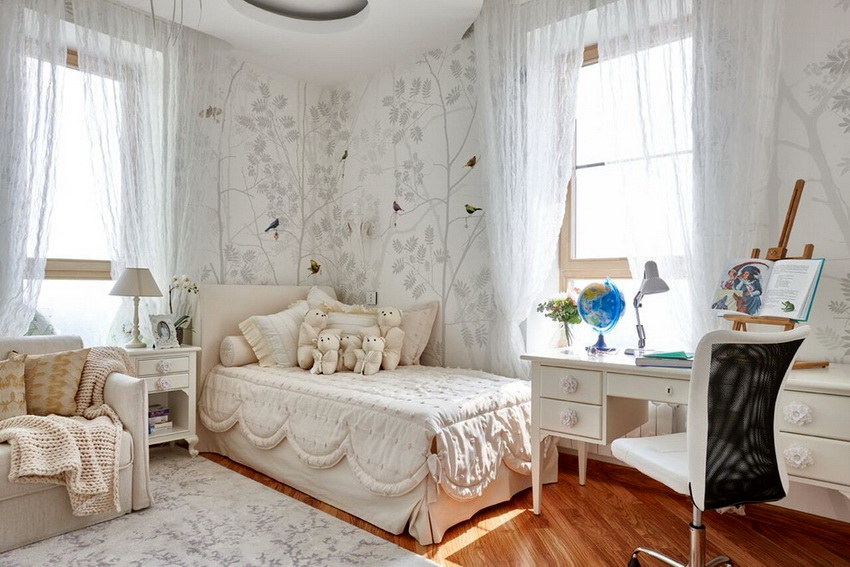סוג המיטה נקבע לא רק על פי ההעדפות האישיות של המארחת, אלא גם על פי גודל החדר. אם החדר קטן, תוכלו לצייד מיטת לופט רב תכליתית עם מגירות, מדפים ומדפים רבים.שולחן כתיבה חייב להיות נוכח ללא כישלון.