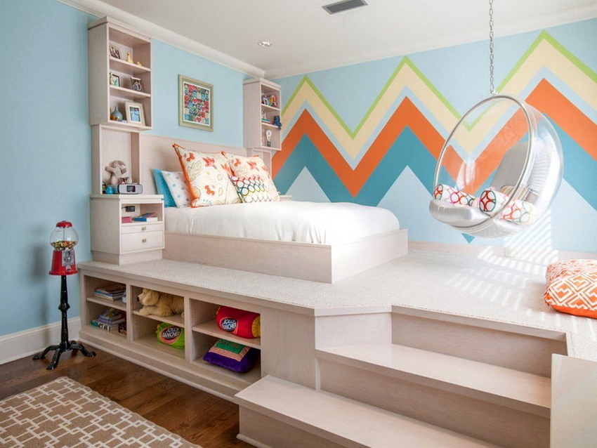 עצה מועילה! אם הבחירה במיטה נקבעת על פי מודל לא שגרתי בצורת טירה, כרכרה או מכונית, ערכת הצבעים שלה צריכה להתאים לעיצוב המקורי תוך שימוש בפלטת גוונים מגוונת.