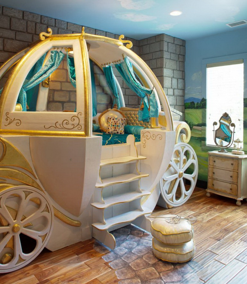 תוכלו ליצור אווירה קסומה באמת בחדר הילדים בעזרת מיטה המסוגננת ככרכרה אמיתית. דגם מתולתל מקורי שכזה לא יהיה רק מקום לשינה נוחה, אלא יהפוך גם לאזור משחקים מועדף.