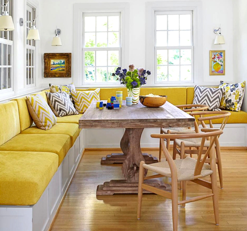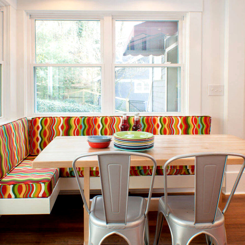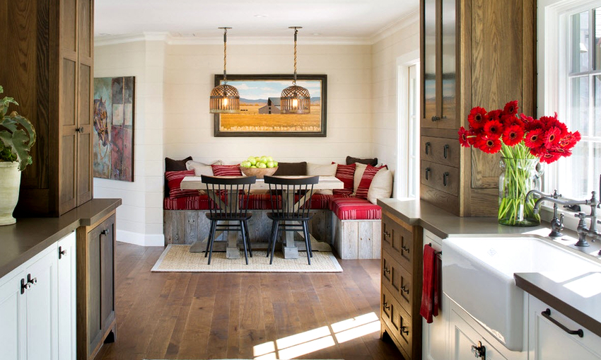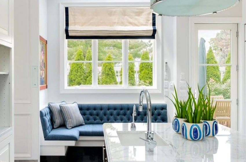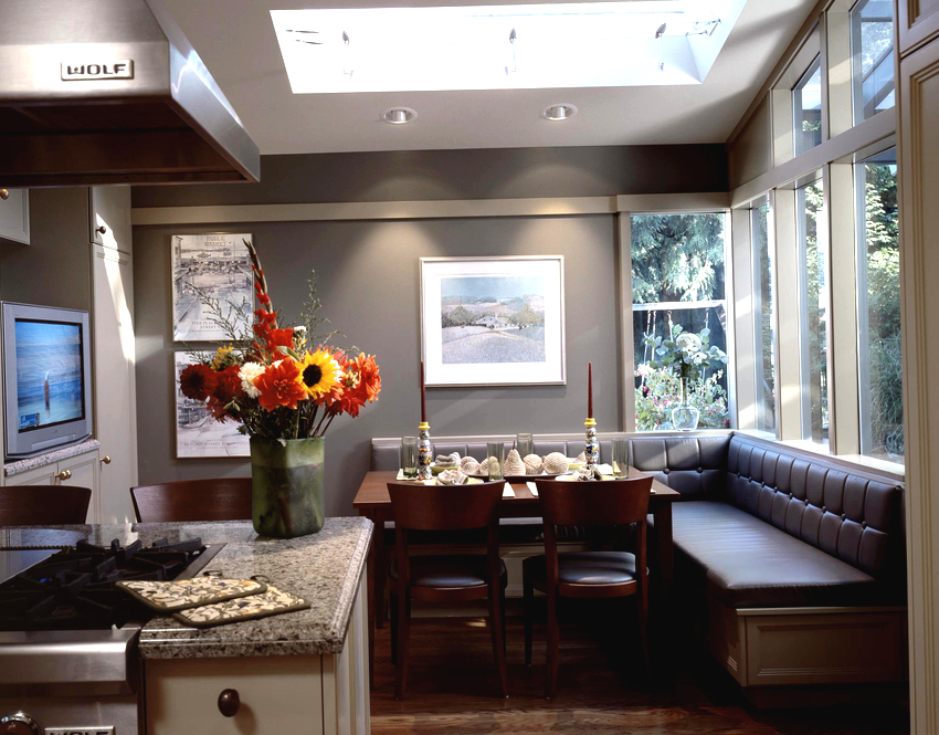 בחירת הצורה האופטימלית של ספה פינתית למטבח עם חלון מפרץ ואי