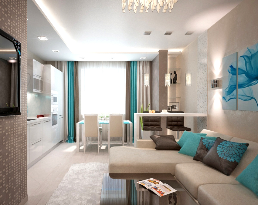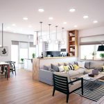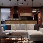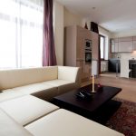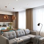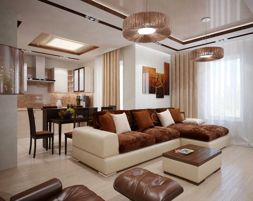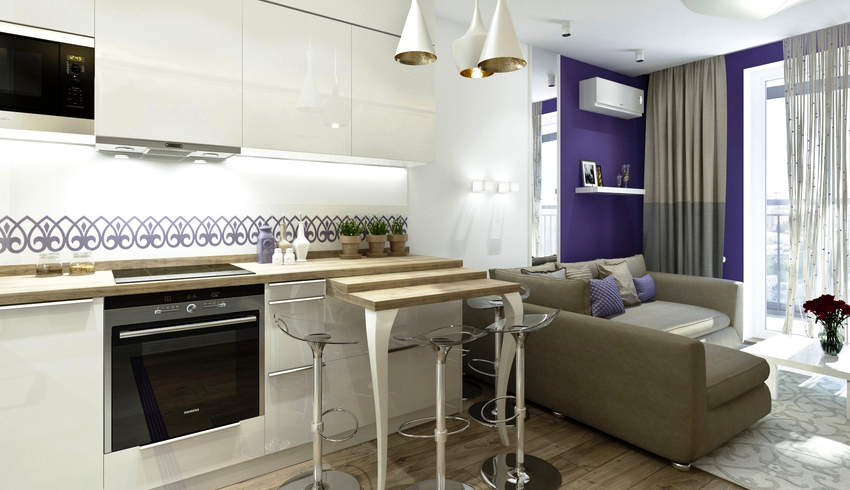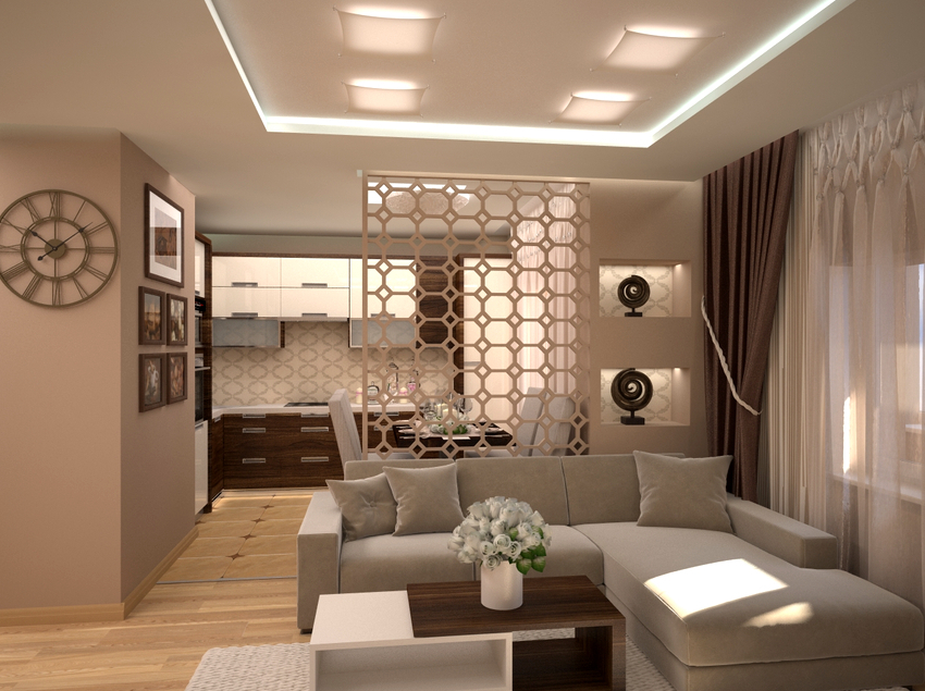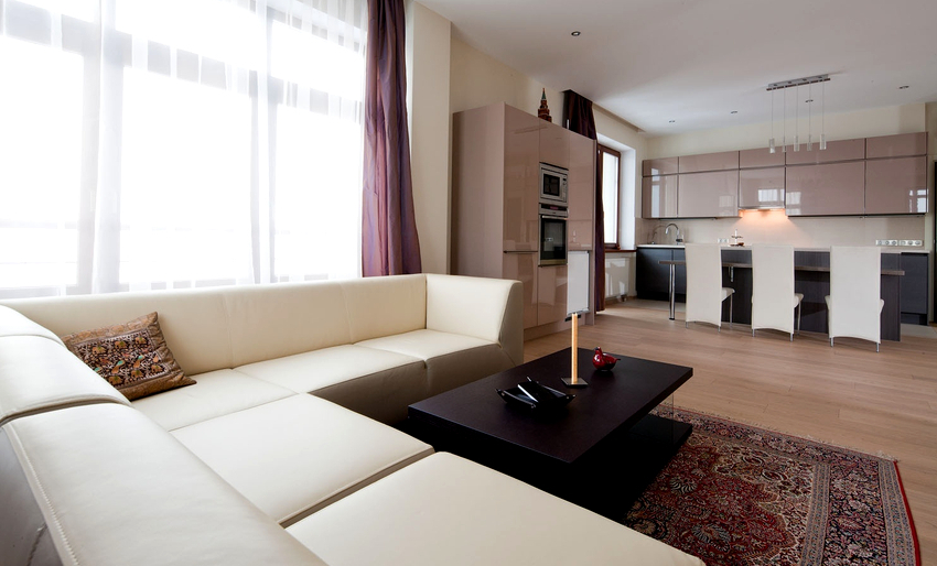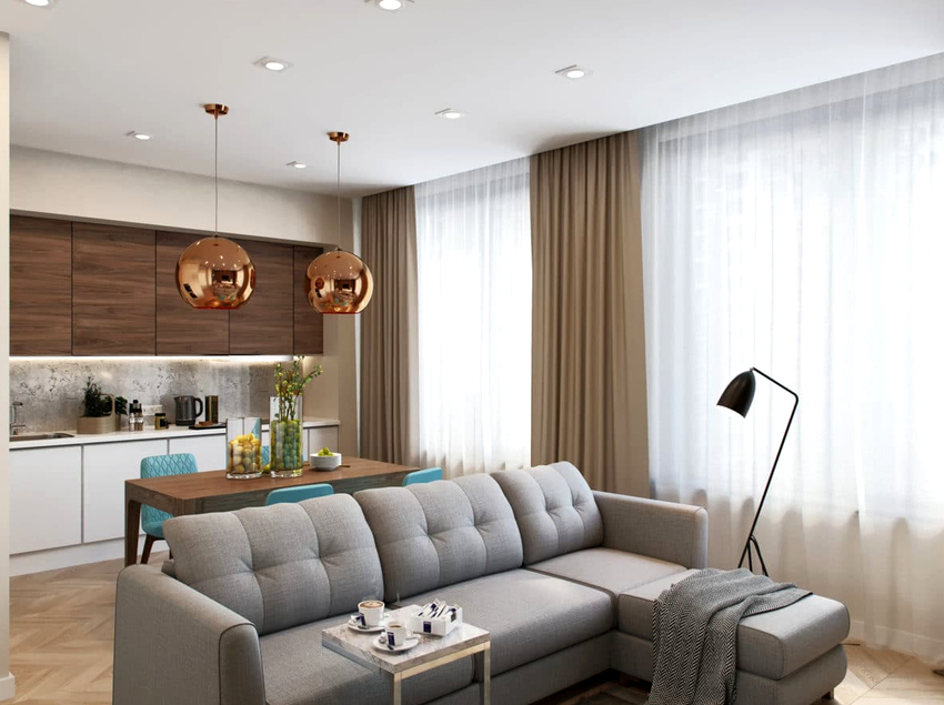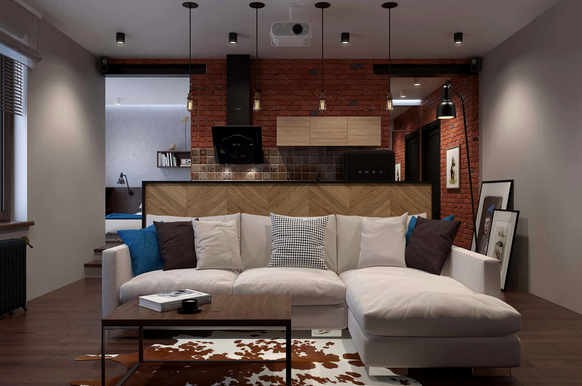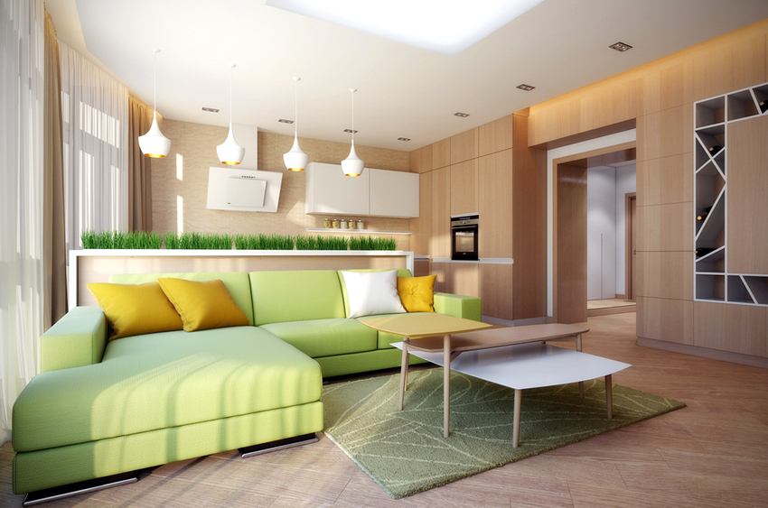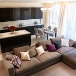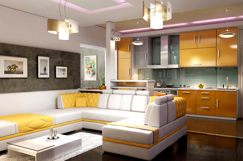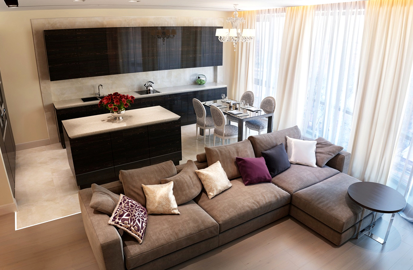 בעלי מטבחים מרווחים וסלונים עשויים אפילו לא להתייסר מהשאלה היכן לשים את הספה.ניתן להציב אותו באמצע החדר עם הגב למקום העבודה, ובכך לחלק את החדר לשני אזורים פונקציונליים.